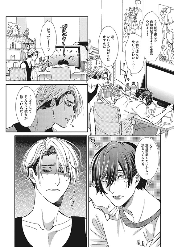 力技で童貞を捨てることにした凛と臨、ナイーブでいじらしい男ふたりが繰り広げるエロラブコメディが、R18仕様の修正で再登場!