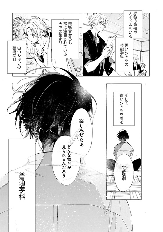その姿をセットの製作者である颯人に見られ、この舞台の主役にならないかと誘われて……!?演劇に人生をかける少年たちの繊細で煌めく青春と恋を描くデビューBL