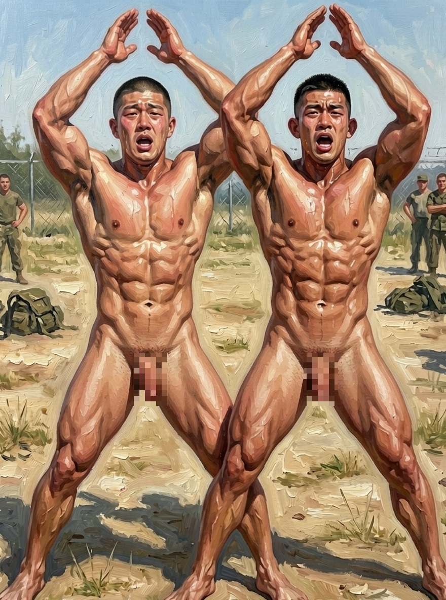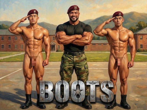 俺は指導教官という絶対的な権力を利用し、奴らを特別指導のターゲットにした。野戦服などという無駄なものは初日に全て剥ぎ取り、支給したのは分厚いコンバットブーツのみ。本作は、俺がこの2匹の屈強なオスを訓練期間を通してじっくりと○○し、完全に「俺のモノ」へと作り変えていくまでの全記録である。