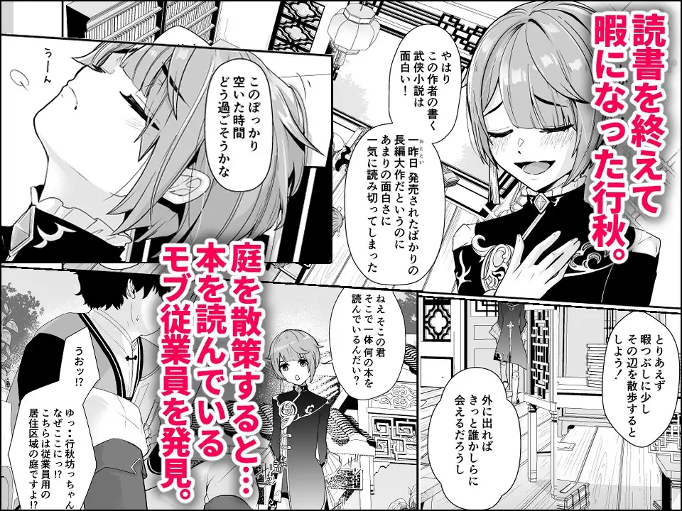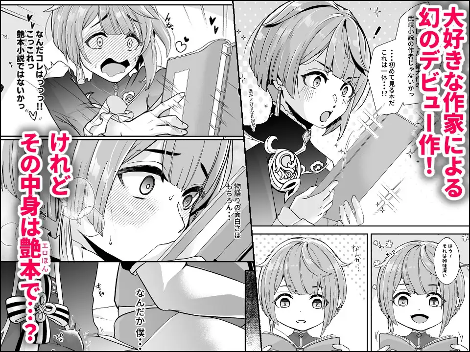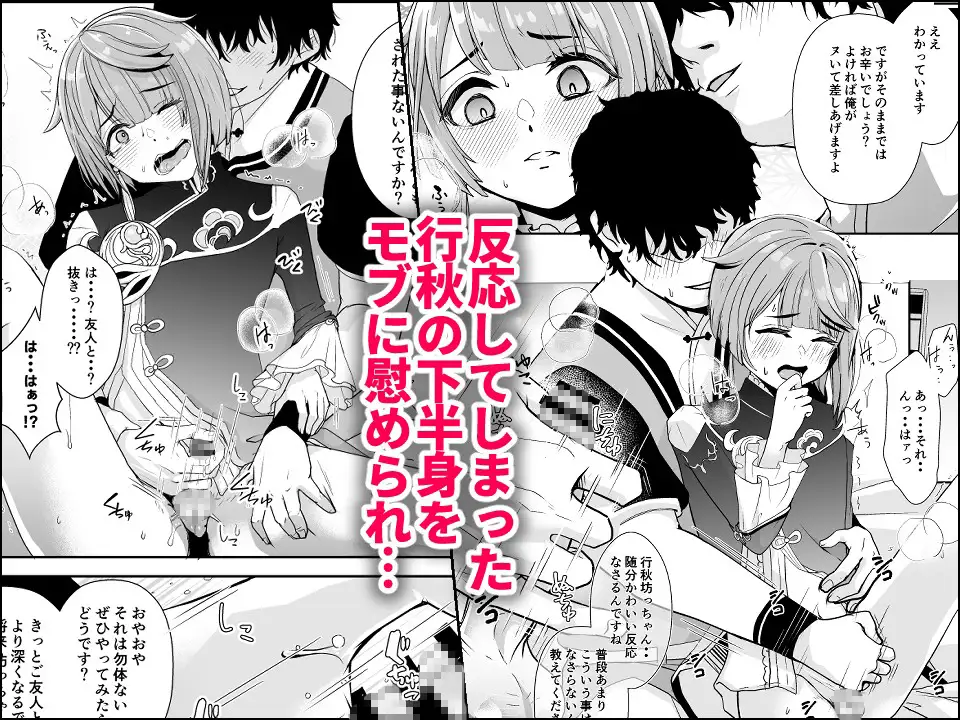 けれど中身は艶本(エロ本)で…?反応してしまった行秋の下半身をモブに慰められながら