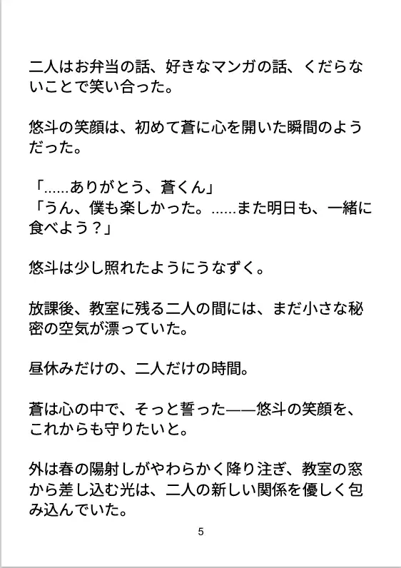 新学期、転校してきた主人公・蒼(あおい)は、周囲に馴染めず孤立しているクラスメイト・悠斗(ゆうと)に出会う。