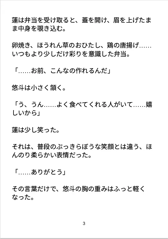 それでも諦めず、自分の想いと向き合った悠斗は、蓮に改めて弁当を手渡し、互いの気持ちを確かめ合う。