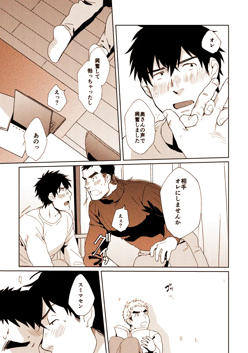 聞かせてしまったことを謝る奥さんに、赤坂は抑えきれない衝動を告げる。「相手オレにしませんか」