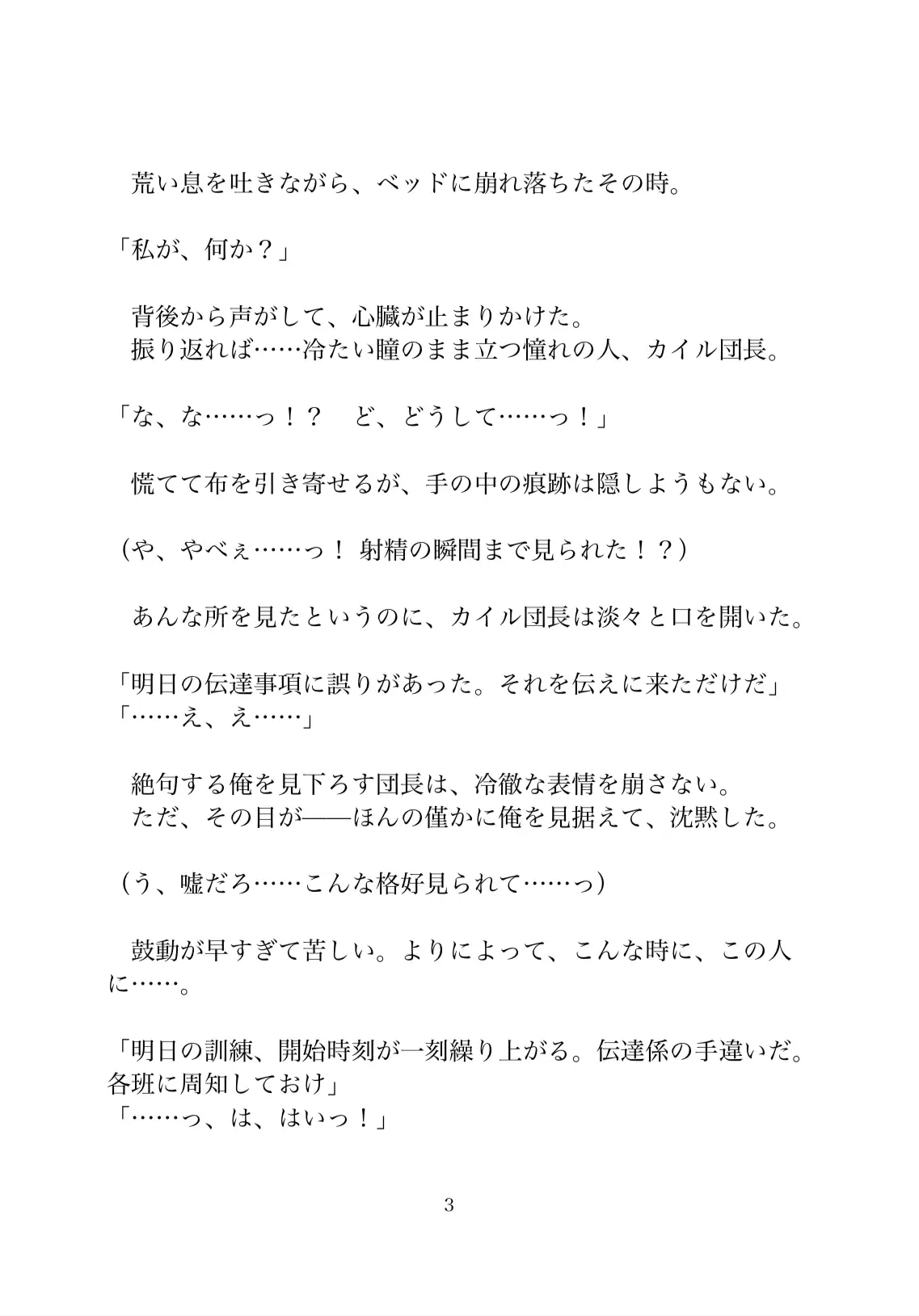 憧れの騎士団長にオナニーを見られたリオン、しかし団長はオナニーも知らないようなピュア団長だった。