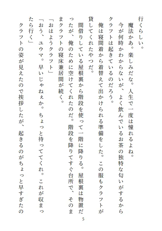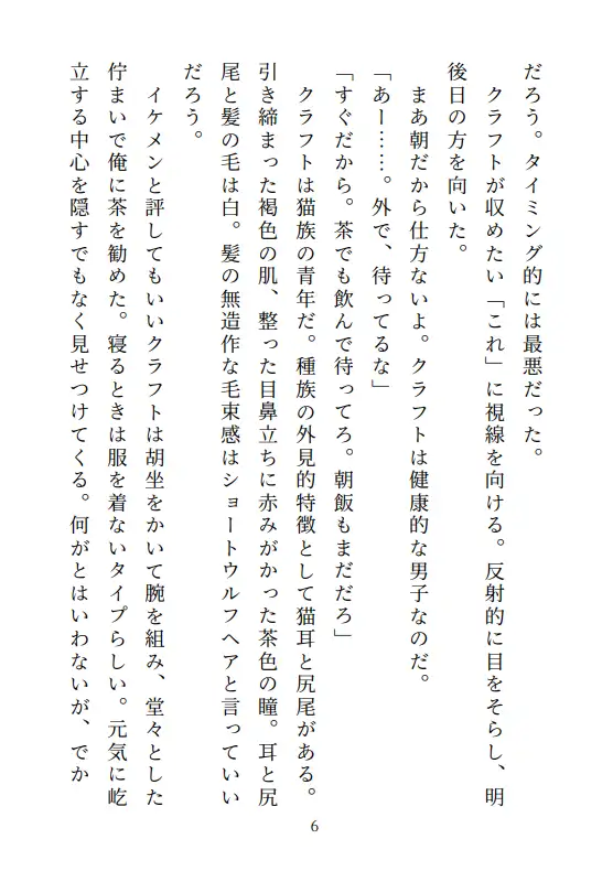 夢か現実か判断できぬまま森を彷徨い、倒れているところを猫族の青年クラフトに拾われる。