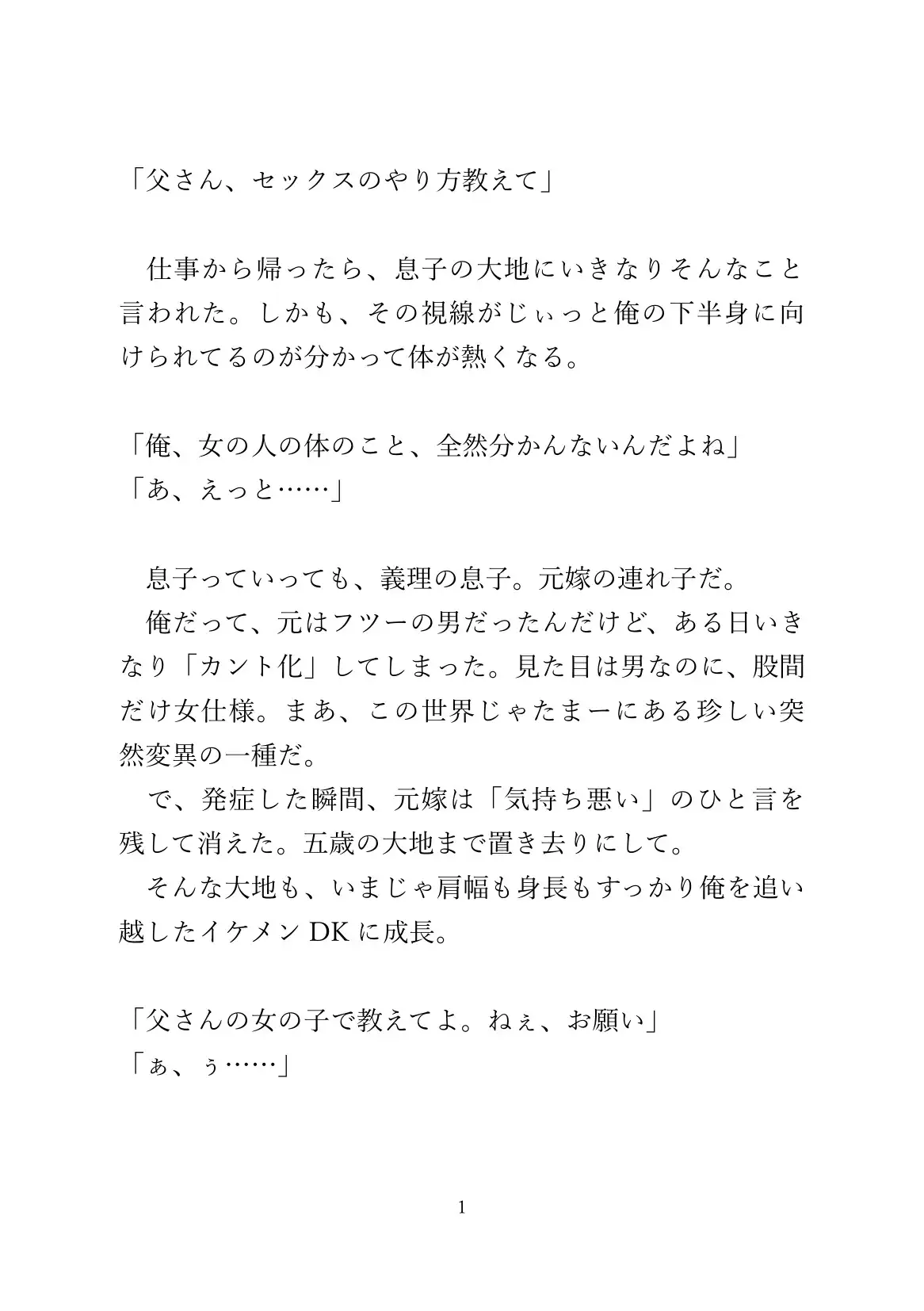 立派なイケメンDKに育った義理の息子に「セックスのやり方を教えて」と相談され、自分の女性器を使って一生懸命教えてあげようとするカントボーイパパの話。