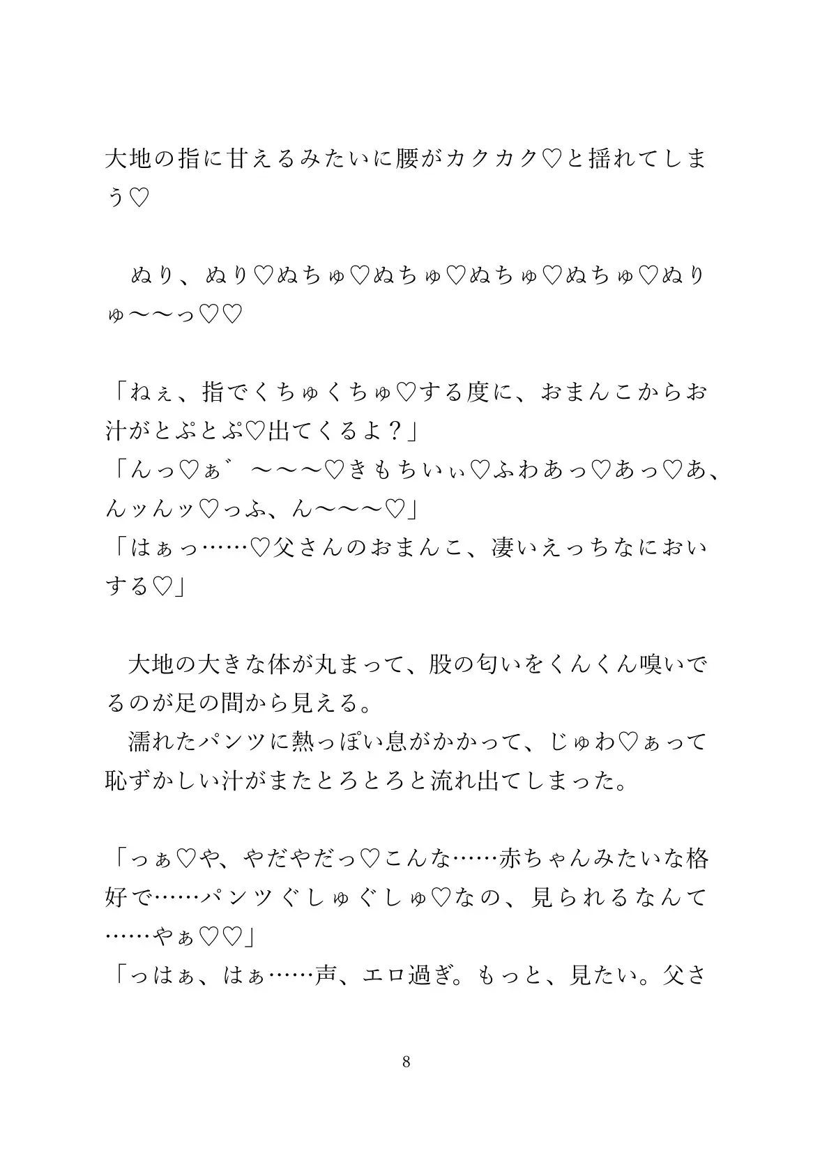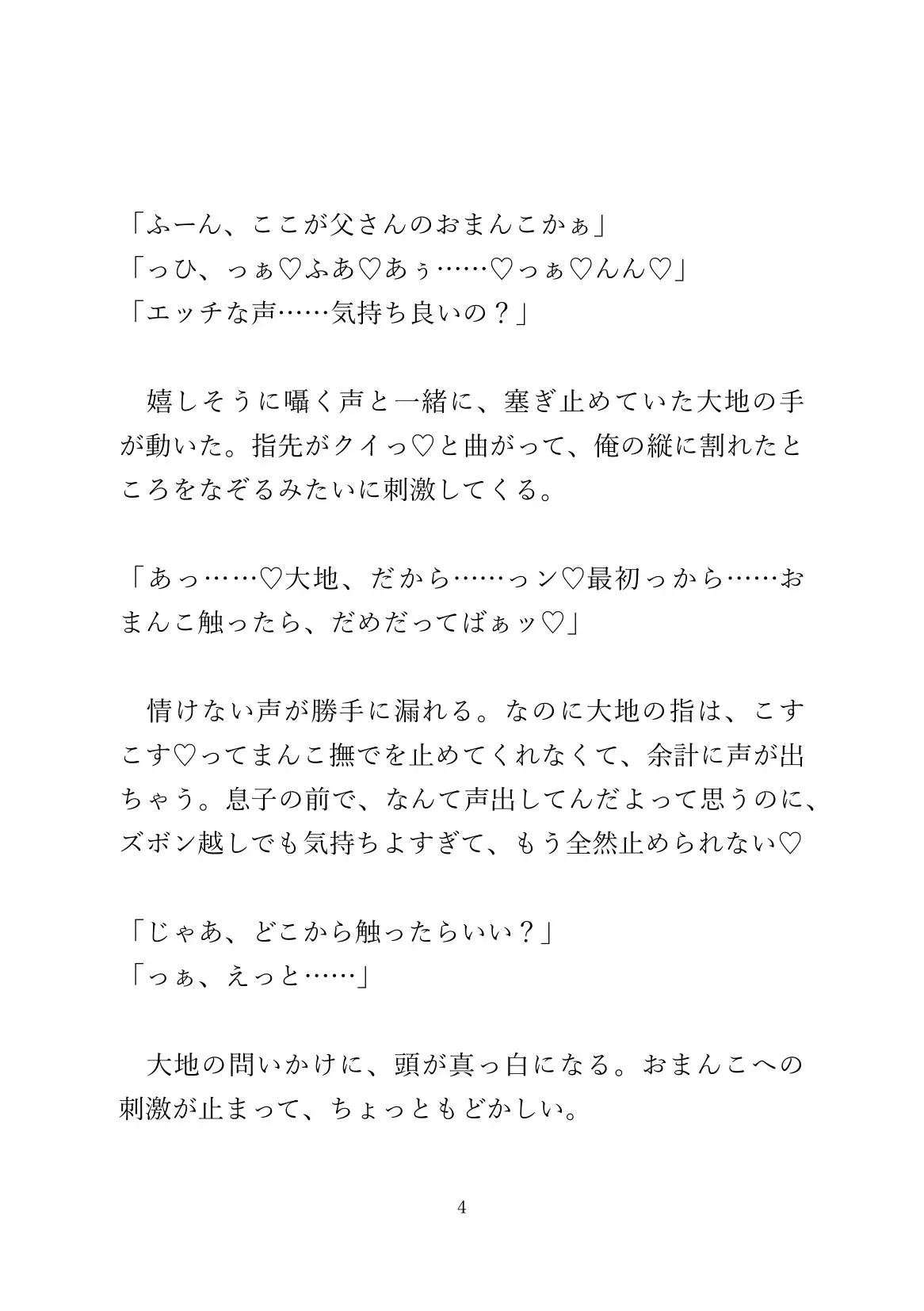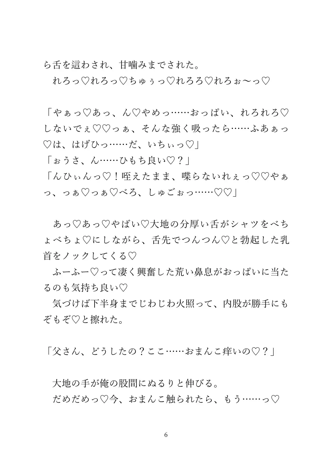 「今、父さんの中で俺の精子泳いでるよ」的なキモい言葉責めが多数あります。文字数はハート、濁点など込みで約12000字程度(37P)