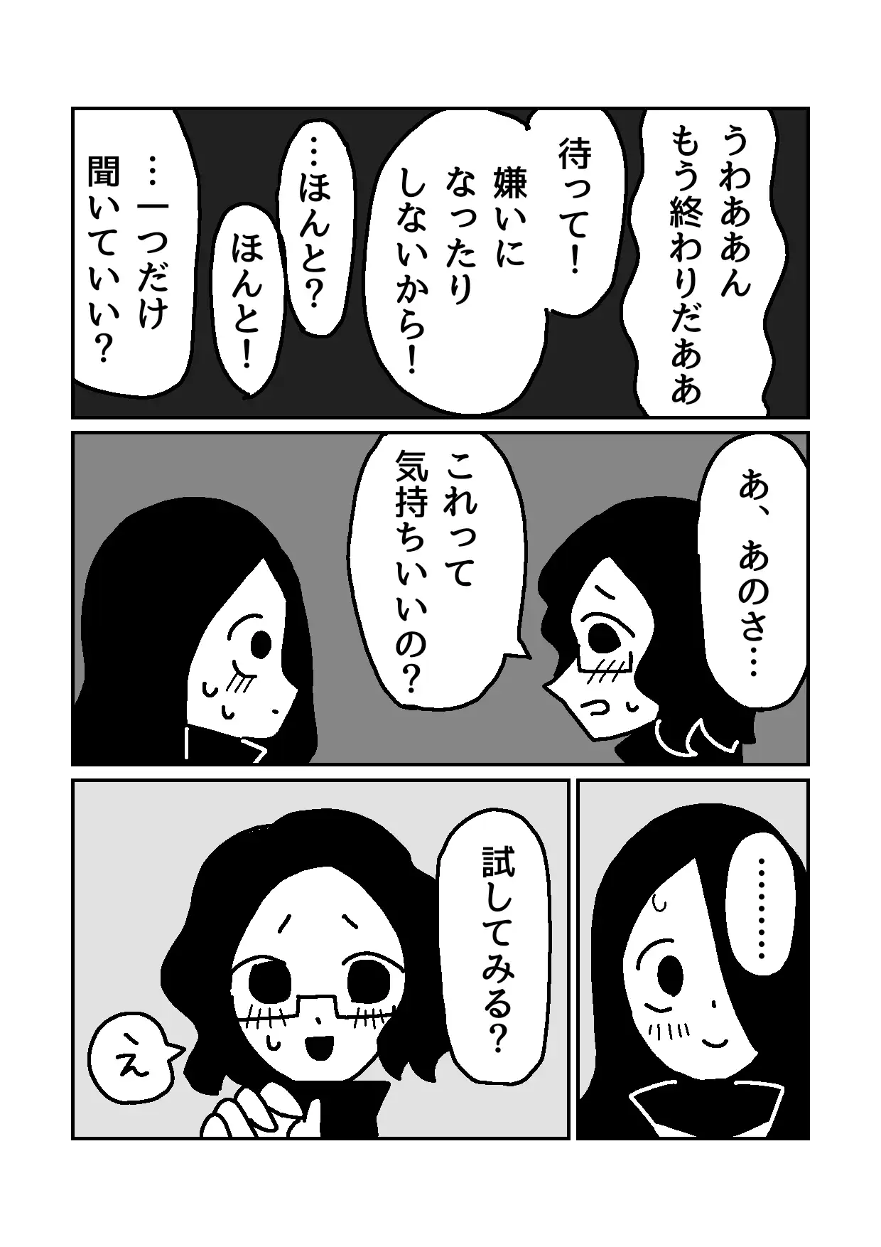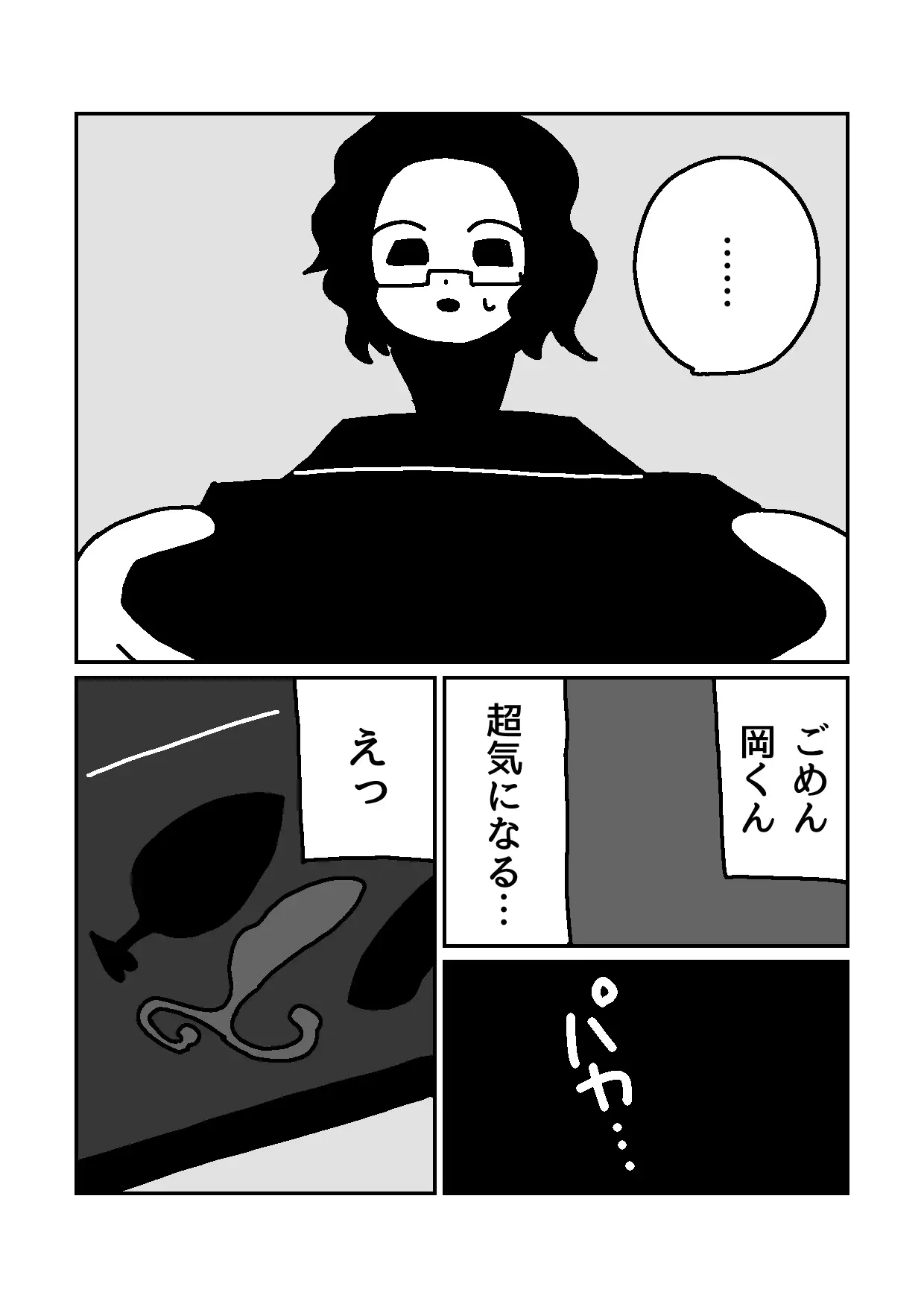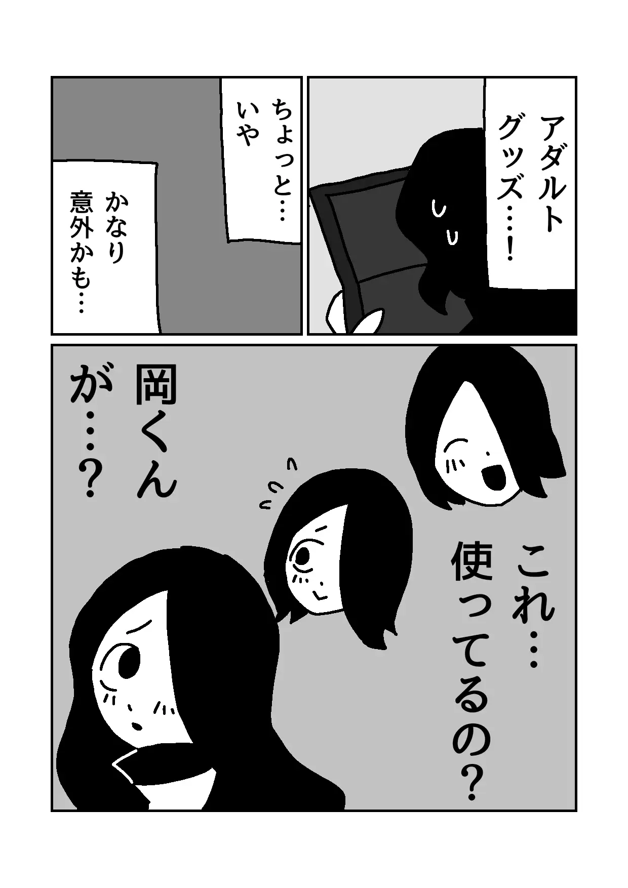 幼馴染の岡(おか)の家に遊びに来た鏡(かがみ)は、偶然アダルトグッズを発見してしまう。