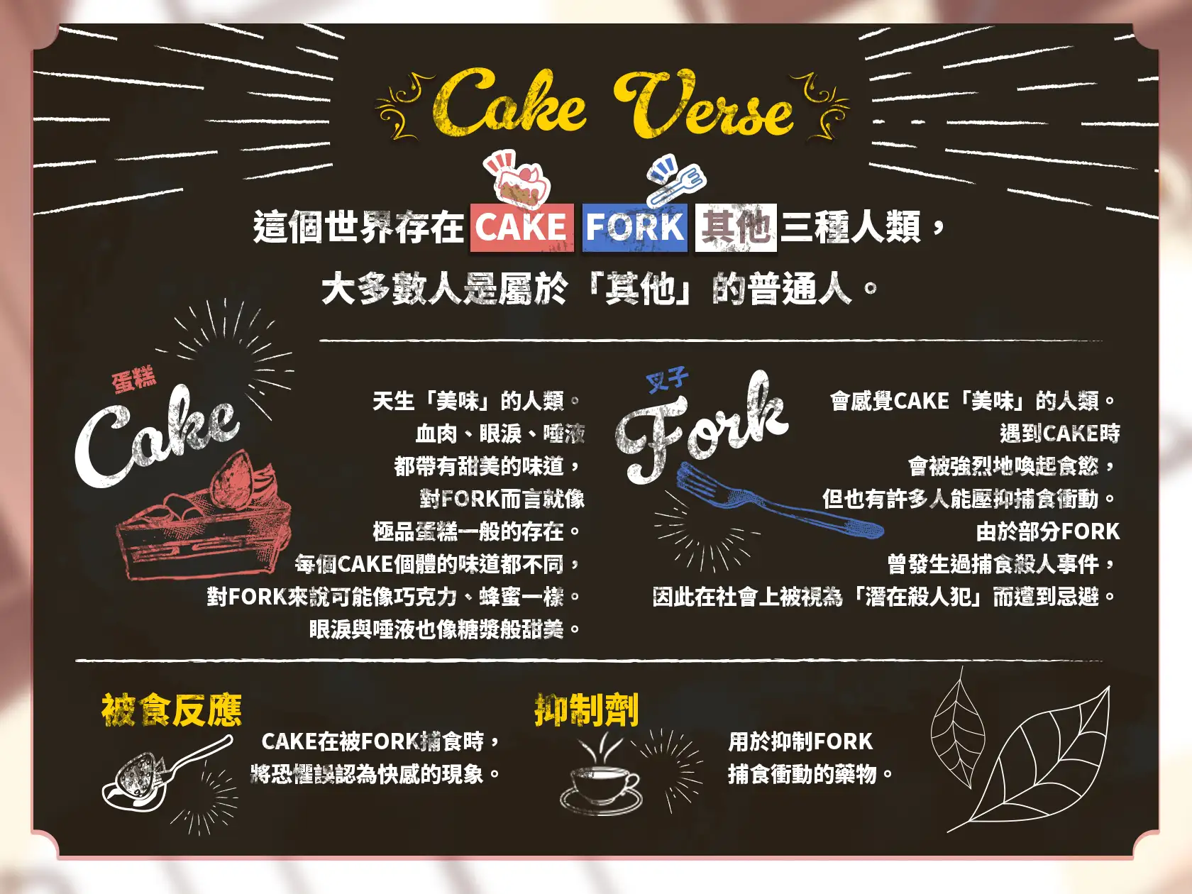 本作所使用的「CAKEVERSE(ケーキバース/蛋糕叉子)」世界觀,係經由原案者Magnolia授權後,由本社團加以採用。