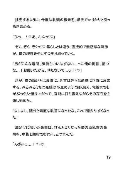やがて颯月は、「俺は先輩の雌」と認め、自ら抱かれることを望むように。忍務の果てに待っていたのは、愛と快楽に支配された雌忍としての新たな運命だった――。
