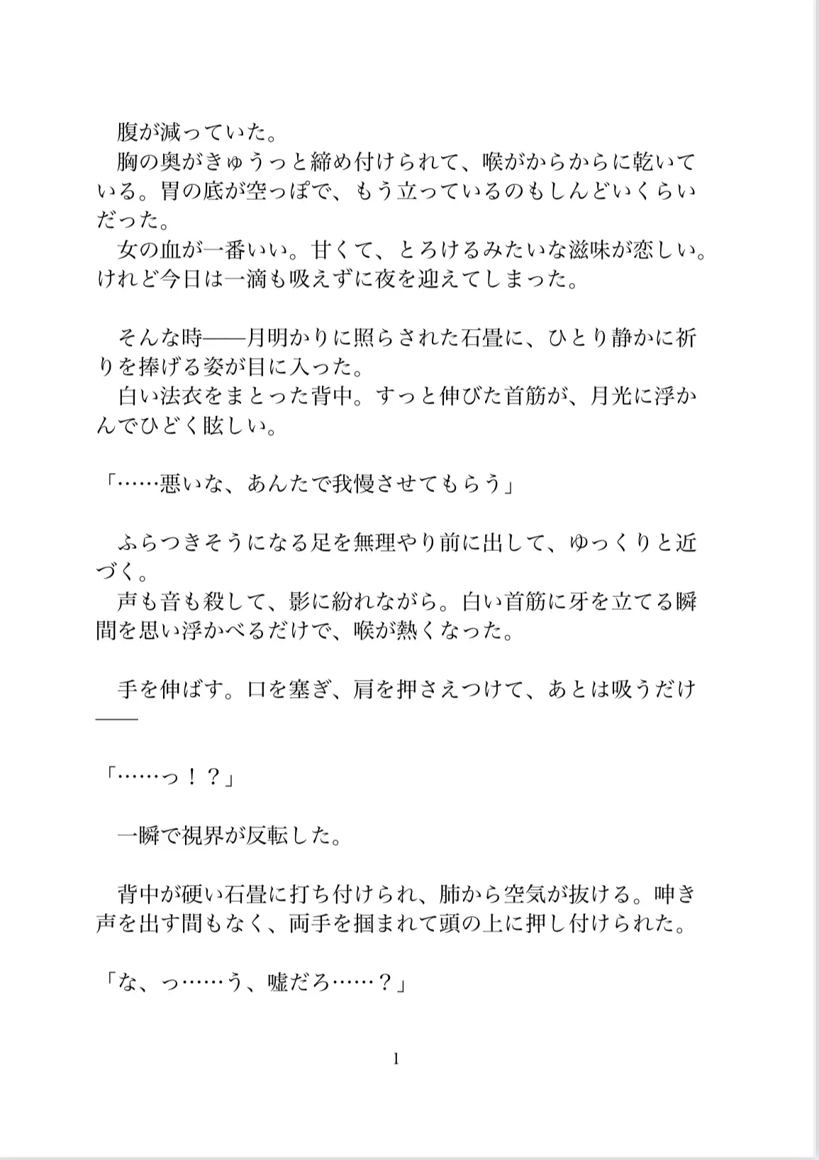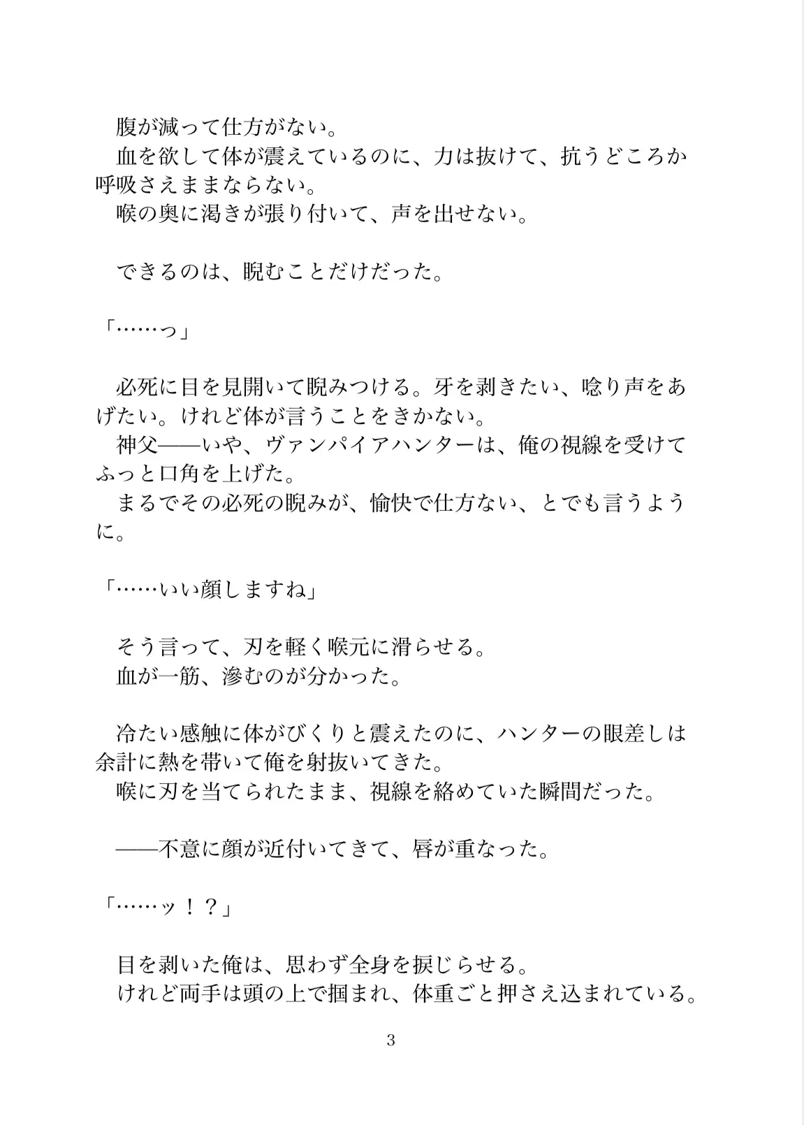 お腹の空きすぎた吸血鬼が狙ったのは神父かと思えばヴァンパイアハンターだった。彼の任務は吸血鬼の抹殺……ではなく、調教だった!気付けばおちんぽはおまんこに変わっており後天性カントボーイにさせられた吸血鬼は吸血鬼にとっては媚薬に感じる彼の血を飲んで乳首やクリを徹底的に苛められちゃう!!