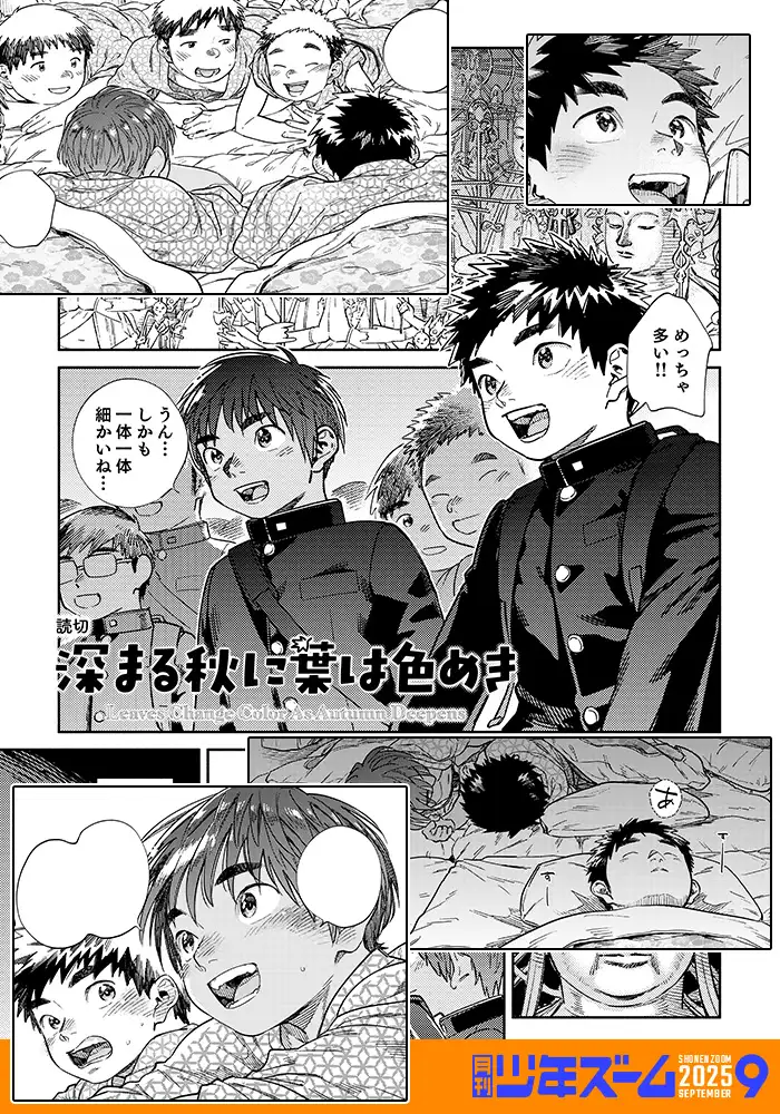 「月刊少年ズーム」として生まれ変わって6年目に突入!隔月連載漫画・読切漫画をローテーションし、イラストなども掲載していきます。9月号はカラーイラスト2点と読切前編「深まる秋に葉は色めき」16ページを掲載しています。※ZIPファイルにはPDF版とJPEG版が含まれており本文内容は同一です。
