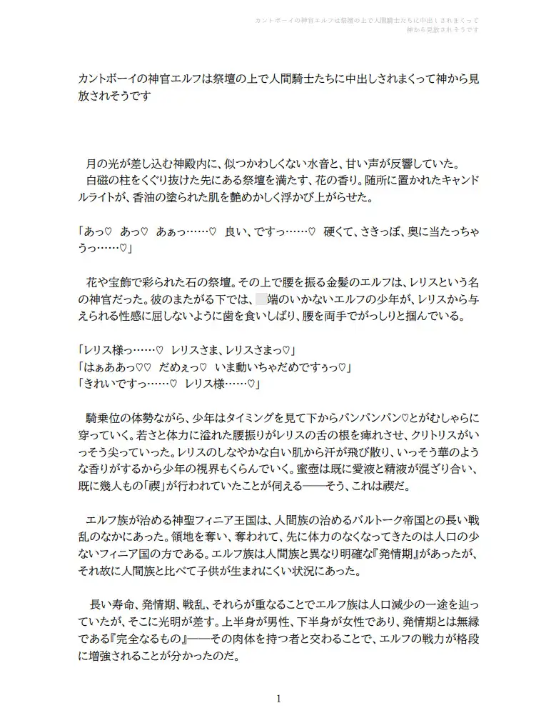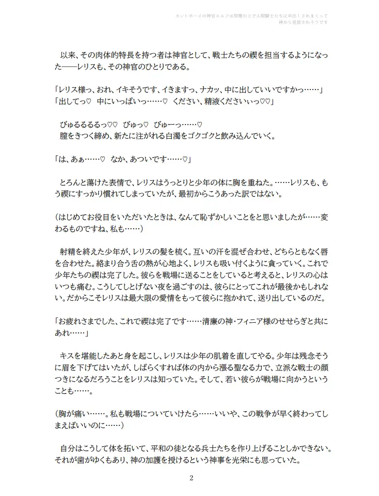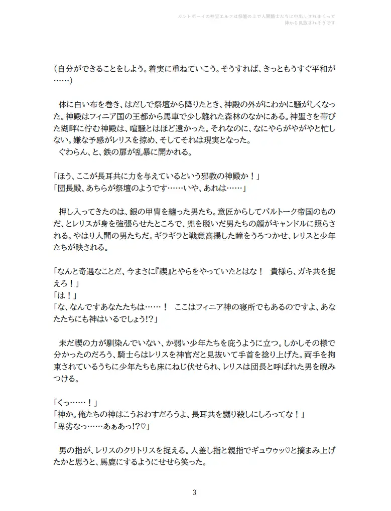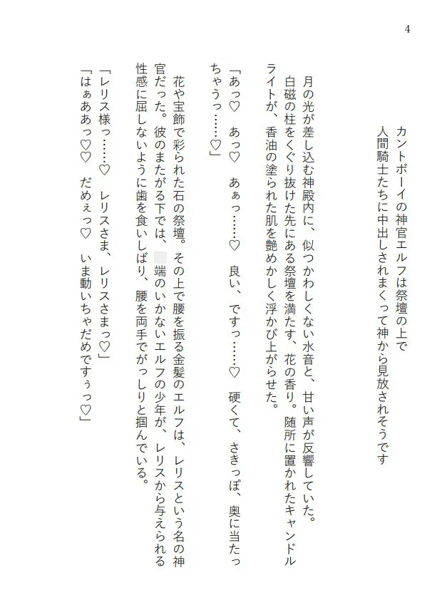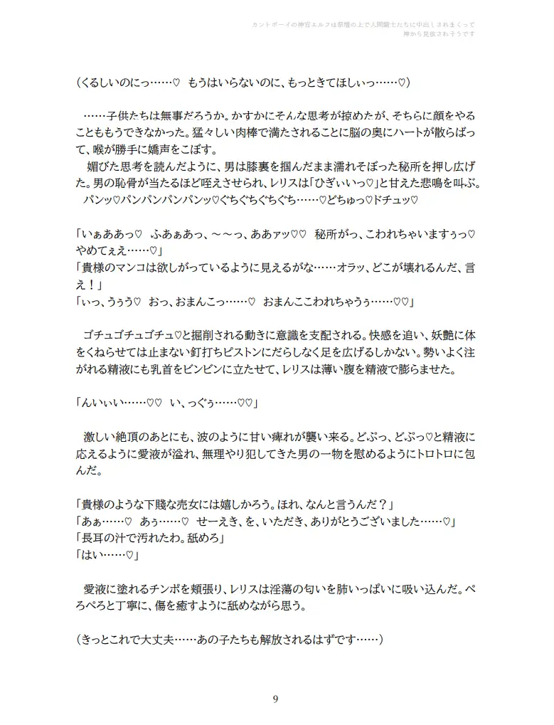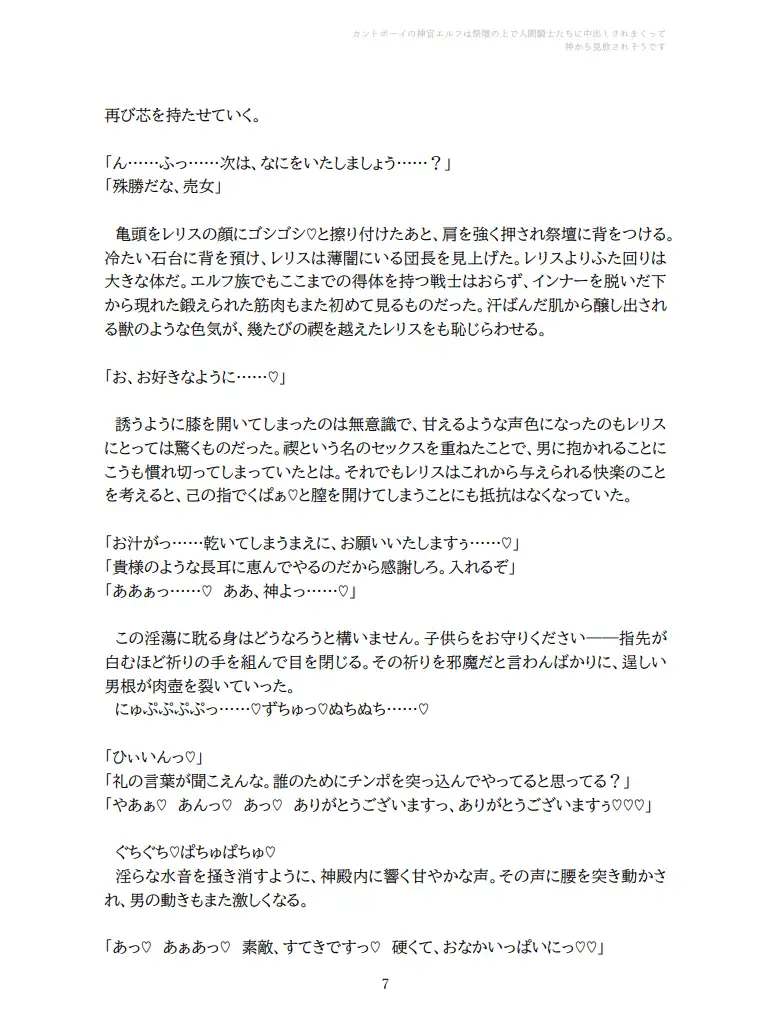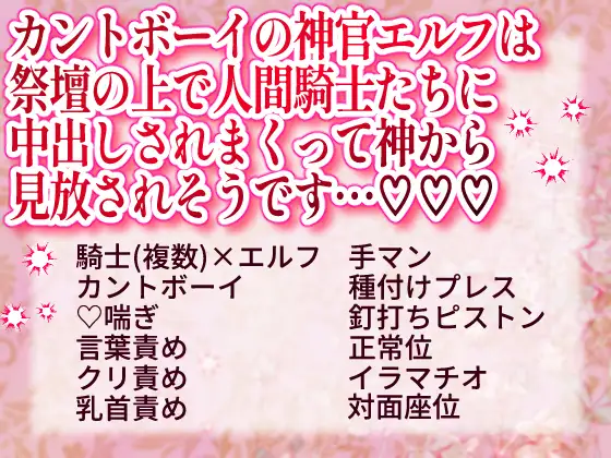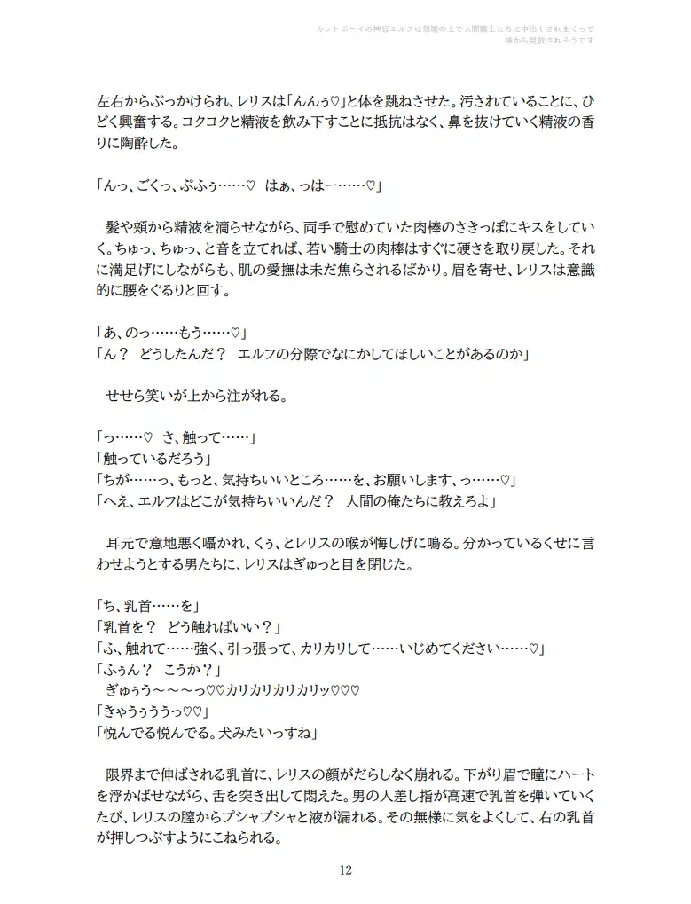 カントボーイ 騎士×エルフ 複数 輪○ 言葉責め クリ責め 乳首責め 手マン 種付けプレス 釘打ちピストン 正常位 対面座位 スパンキング 中出し 快楽堕ち etc■約13,000字/縦書き・横書きPDF同梱