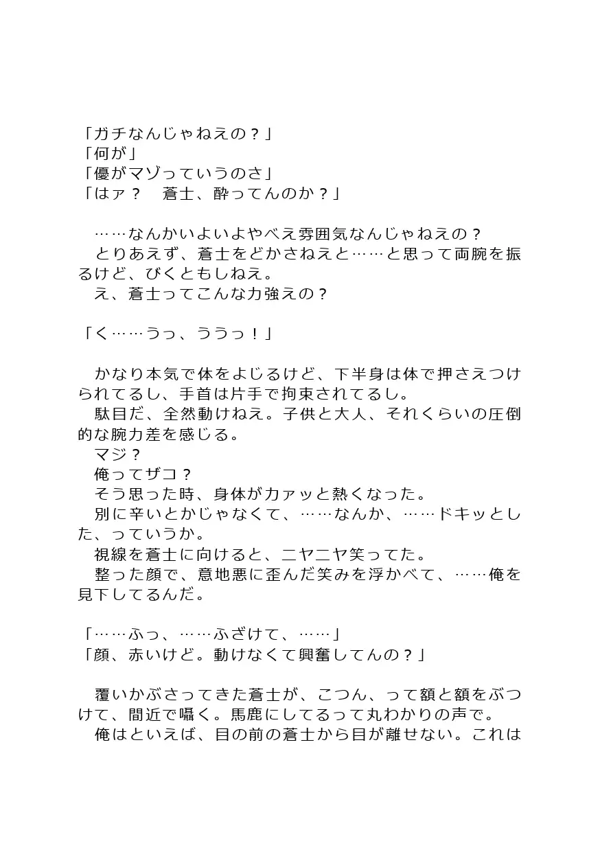 最初は強引ですが、最終的にはハッピーエンド(メス堕ち)です。強引にヤられちゃうのが読みたいけど、受けが可哀そうすぎるとちょっと…というときにオススメ!