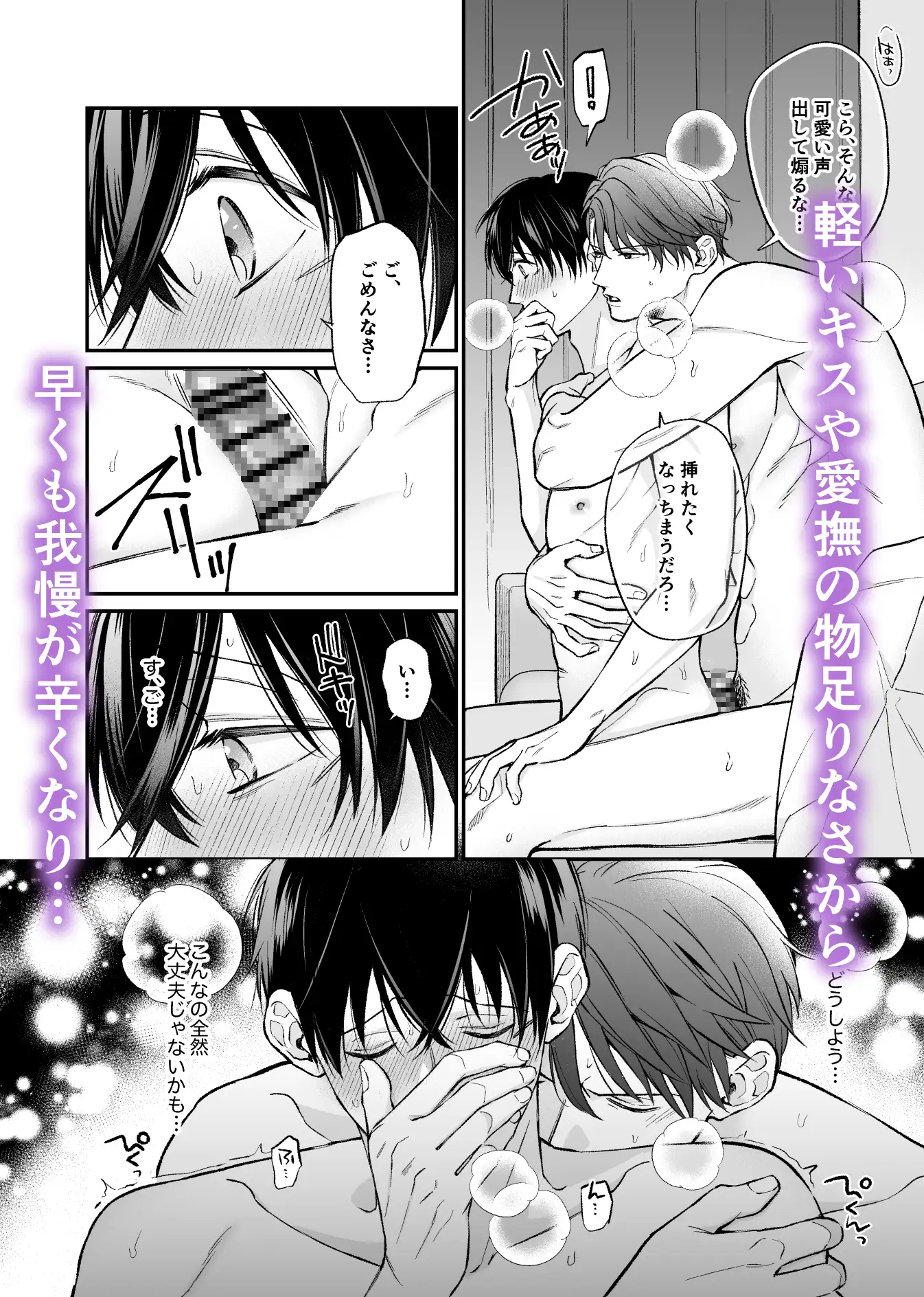 官能小説家で恋人の九我に、ある日ポリネシアンセックスに誘われた高校教師の千秋。かつて九我と両想いになるも、九我の甥っ子で千秋の教え子が卒業するまでは保護者と担任の関係のままでいたいという千秋の希望により、本番セックスを1年と少しの間我慢した過去がある。