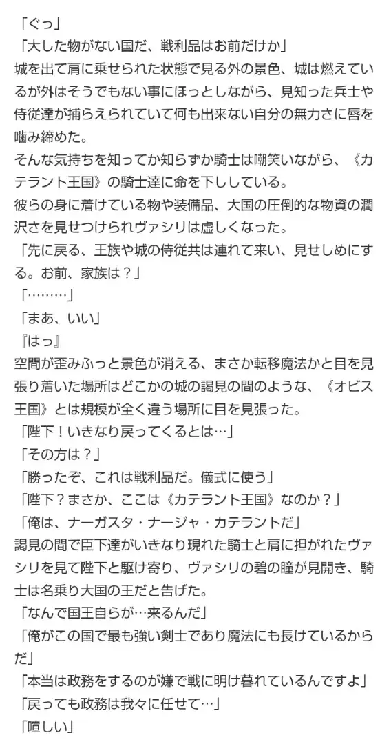国王と捉われた敗戦国の兵士と騎士の関係どこかおかしな関係