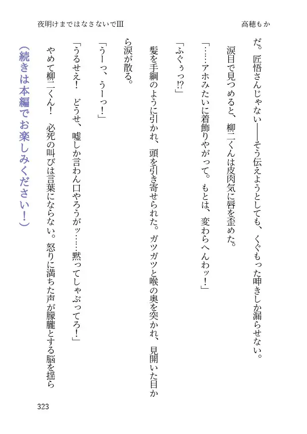 「お願い。この夜が明けるまでは、はなさないで……」暴行事件の後、柳二の家に連れ帰られた茅太。