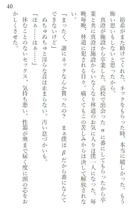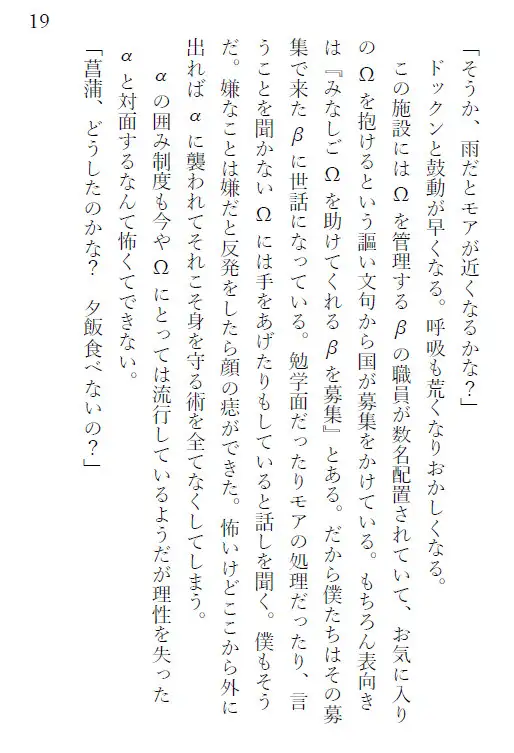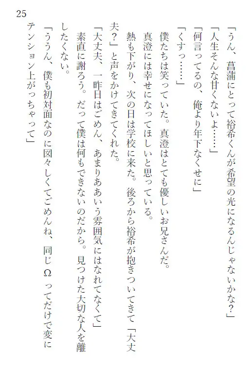 そんな裕希をいつも慕い、支えられてきた孤児のΩ・菖蒲は、未来を信じ、正直に蒼真への想いを口にする。蒼真もまた迷いながらも、菖蒲が「運命の番」であることを知り、その告白を受け入れる。