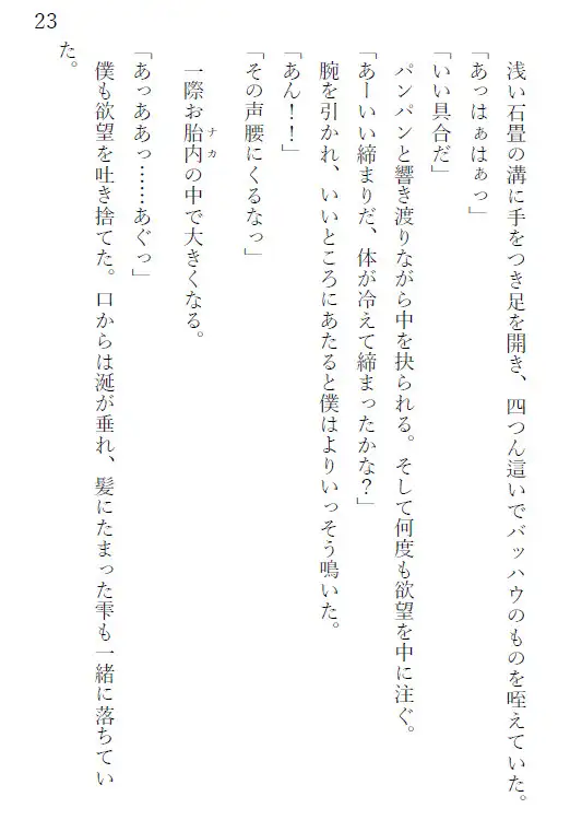 得意分野を活かし生活する。そしてΩは奴○として市場で売られ買われた役人に性教育を学ばせられた。