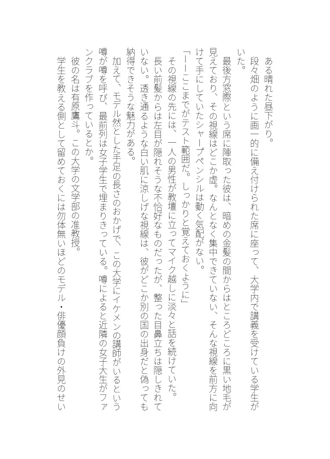 准教授と学生の身分でありながら、恋人同士となり付き合っていた鷹斗と歩だが