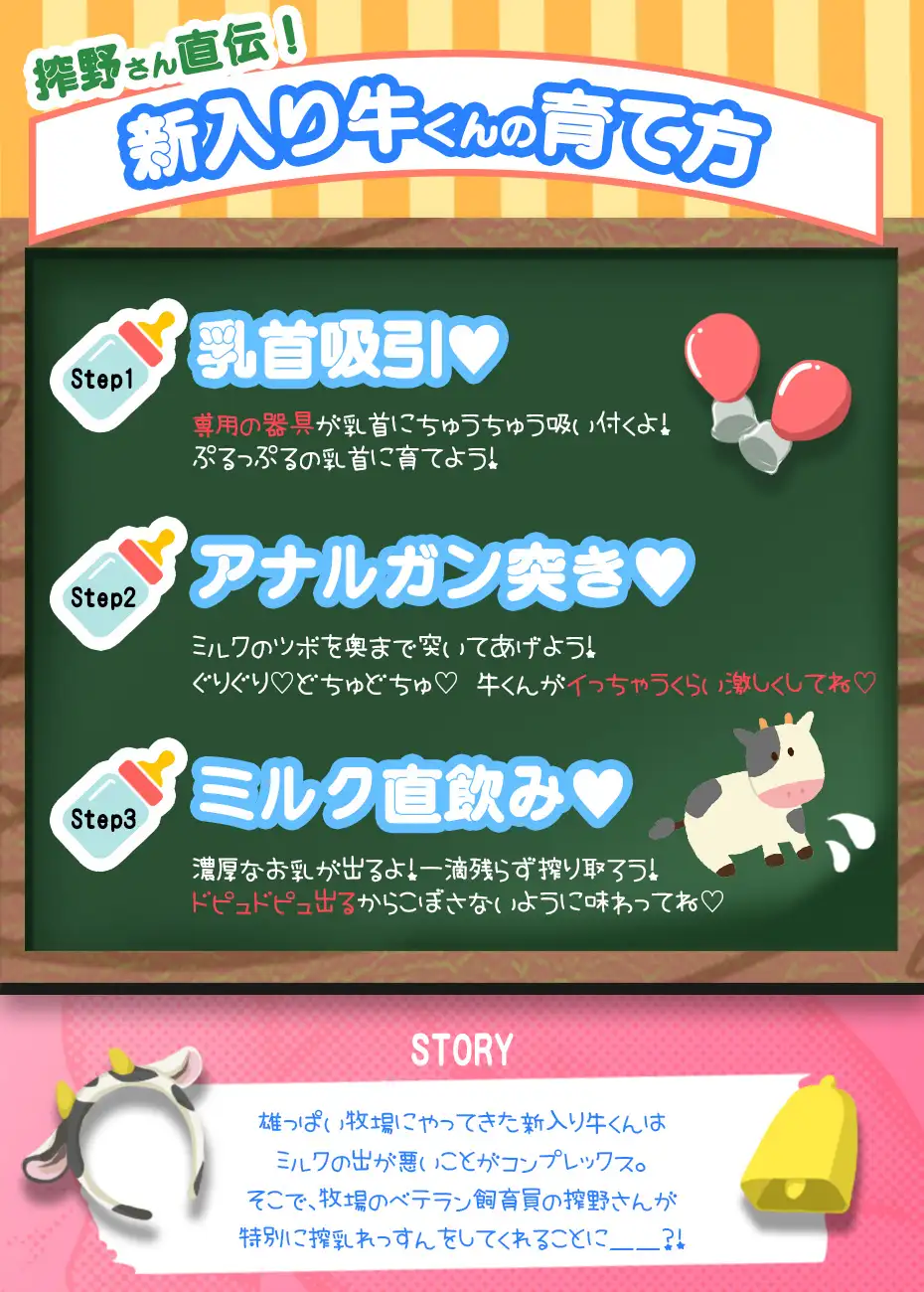 雄っぱい牧場にやってきた新入り牛くんは、ミルクの出が悪いことがコンプレックス。