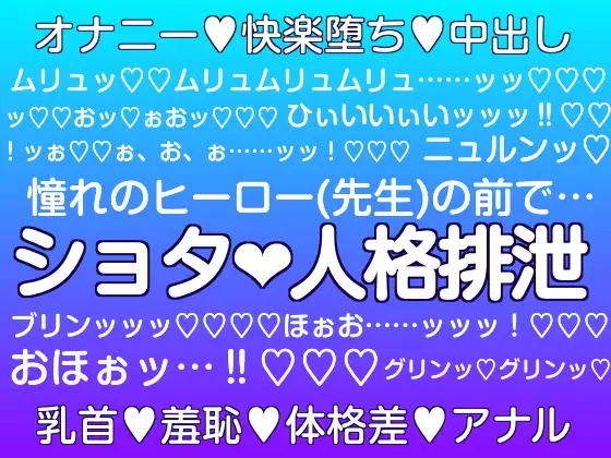 人格排泄おもらし(ゼリー) ショタ受け 羞恥 おほ声 快楽堕ち 中出し 乳首 オナニー 教師(攻) 巨根(攻) ハート喘ぎ(ハートなしバージョンも同梱) 戦隊もの ハッピーエンド など
