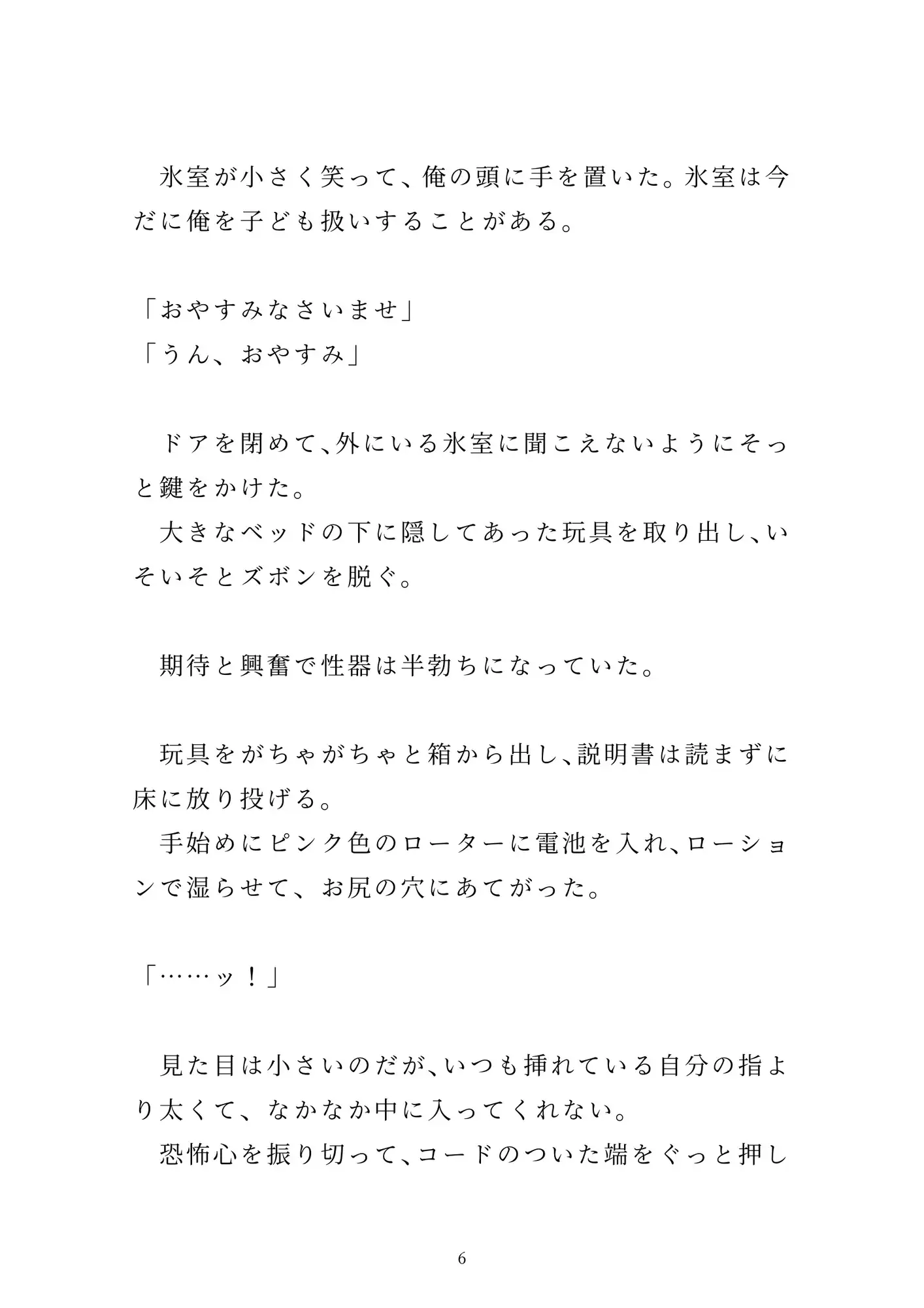 氷室は冷静さを装いながらも、内心では長年抱き続けてきた欲望が抑えきれず、玩具で湊を追い詰める。羞恥と快楽で翻弄される湊は、反発しながらも氷室の支配的な愛撫から逃れられなくなる。
