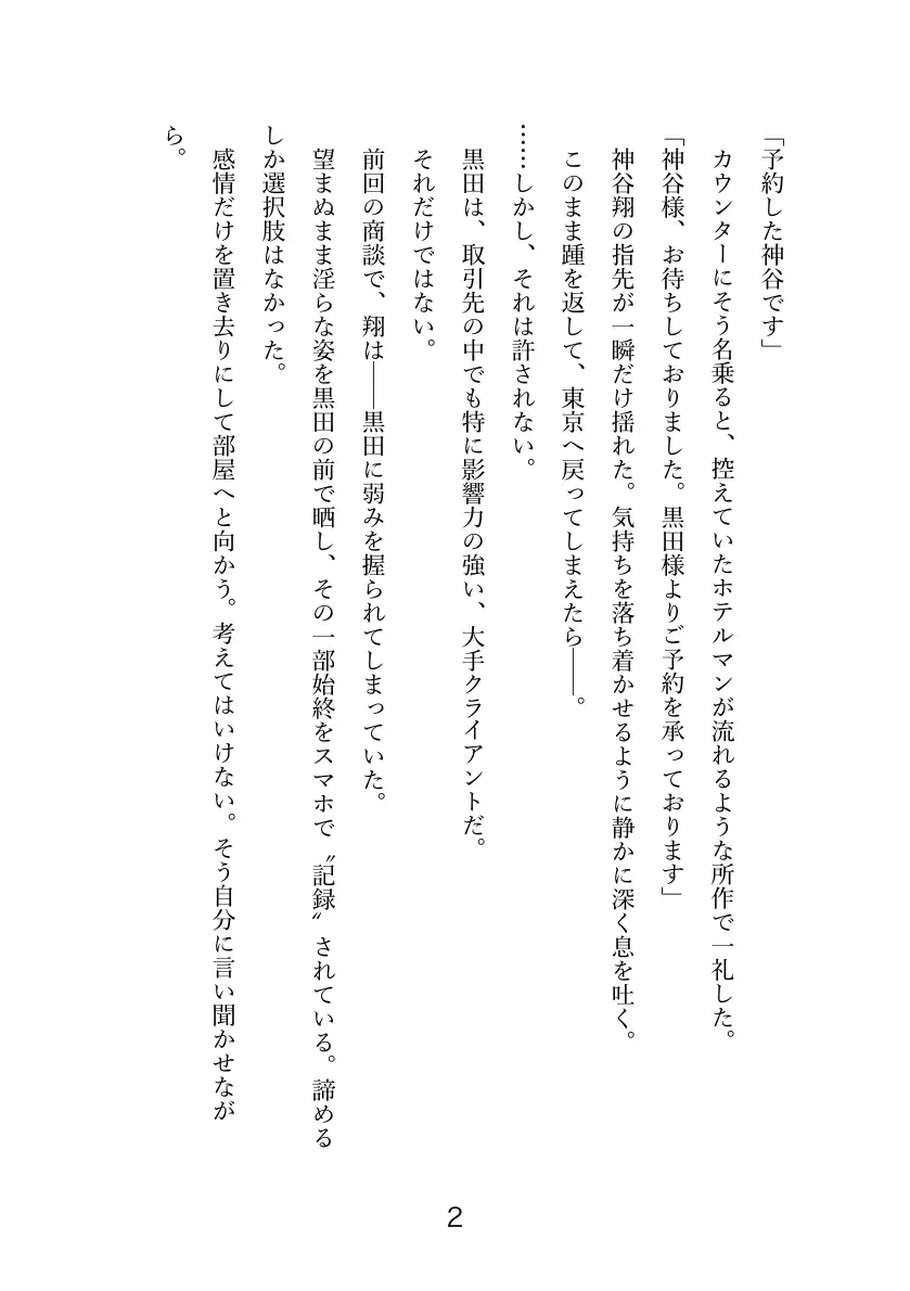 その夜、翔は二度と戻れない檻に囚われていく。※本作は『美人リーマン 堕とされた商談の夜』の続編にあたりますが、この作品だけでも内容は追えるようになっています。