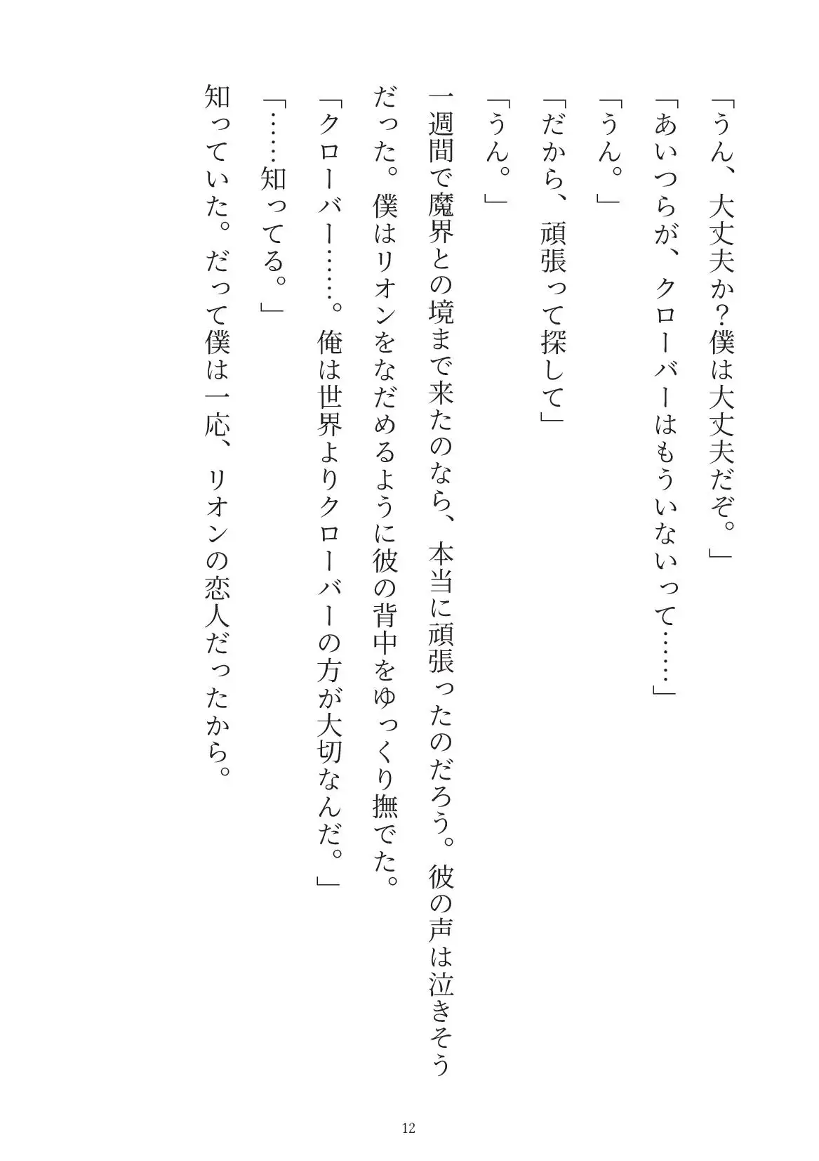 僕、クローバーには完璧勇者様な幼馴染リオンがいる。かっこよくて優秀なリオンと違い平凡なクローバーは、リオンの願いで勇者リオンの隣にいたが、周囲の人間からは快く思われていなかった。勇者リオンがいない間に他のパーティメンバーに追放されてしまったクローバーは……。美形完璧勇者(?)×平凡魔法使いの話です。プレイ的にはイチャラブ系です。