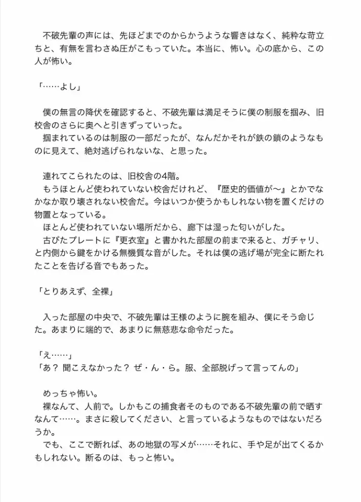 入学して数ヶ月、校内でも有名な不良・不破響也(ふわ・きょうや)に弱みを握られてしまう。「とりあえず、全裸」