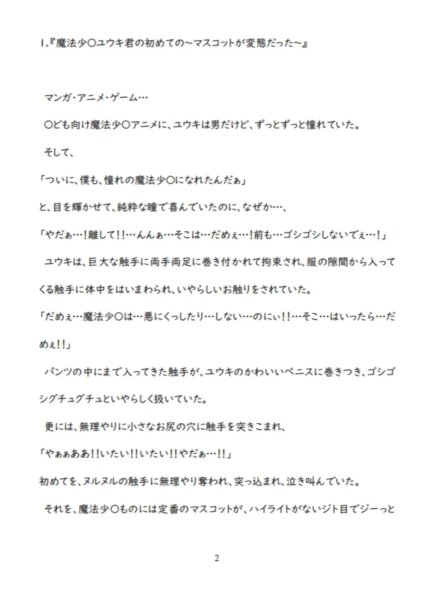 1.『魔法少〇ユウキ君の初めての~マスコットが変態だった~』