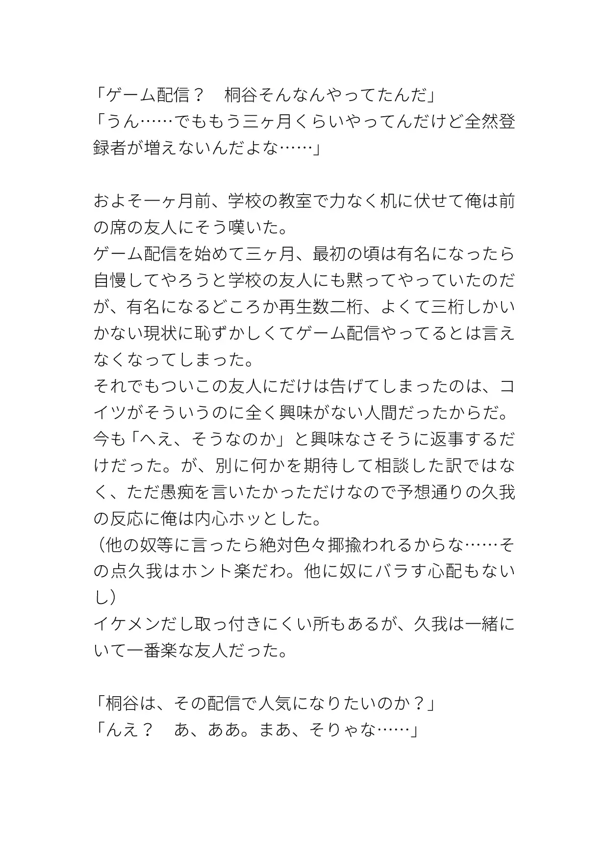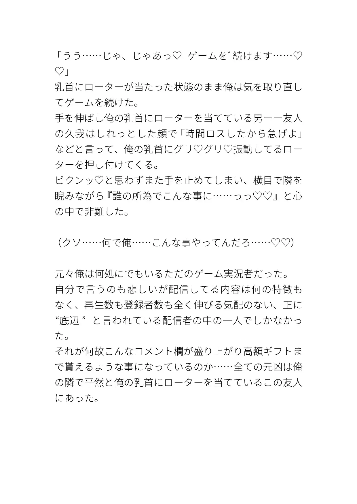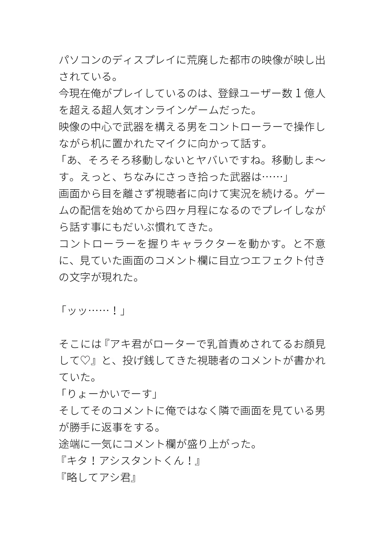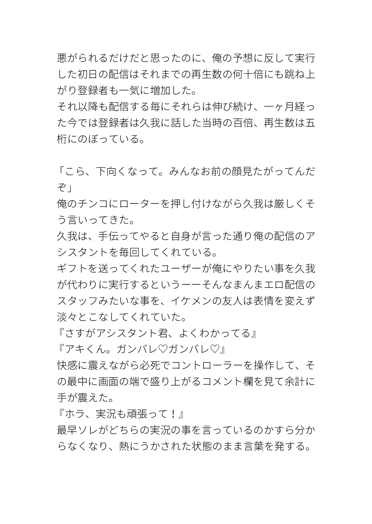 ただの普通のゲーム実況者だったのに友人のアイデアでエッチな実況まで始めてしまった受けの話です。