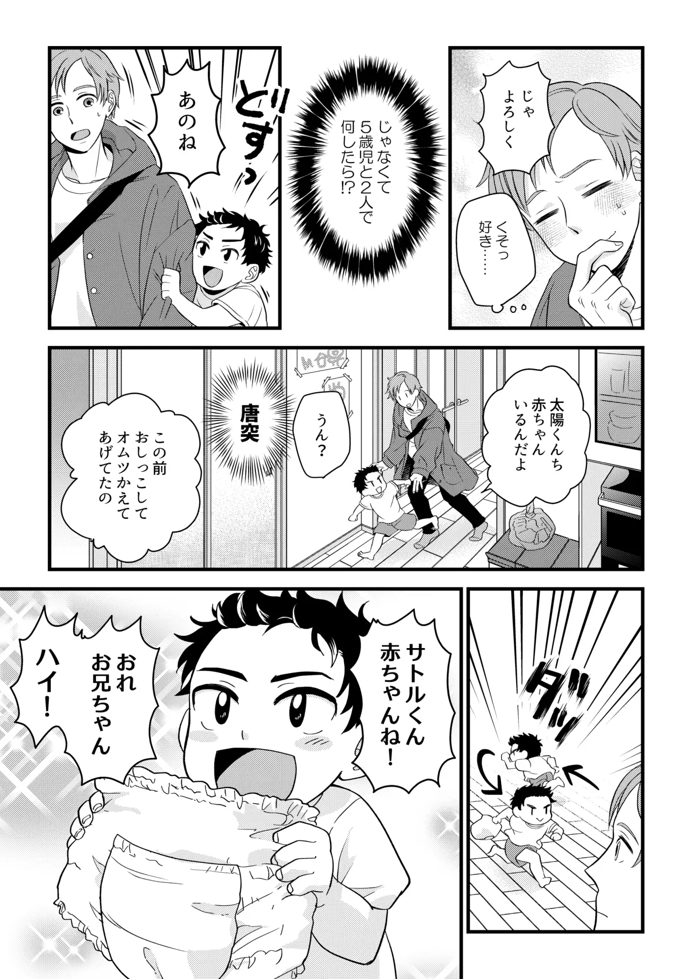 恋人みつるの家に遊びに行ったサトルは、急遽みつるの弟・奏多(5歳)と留守番することに。