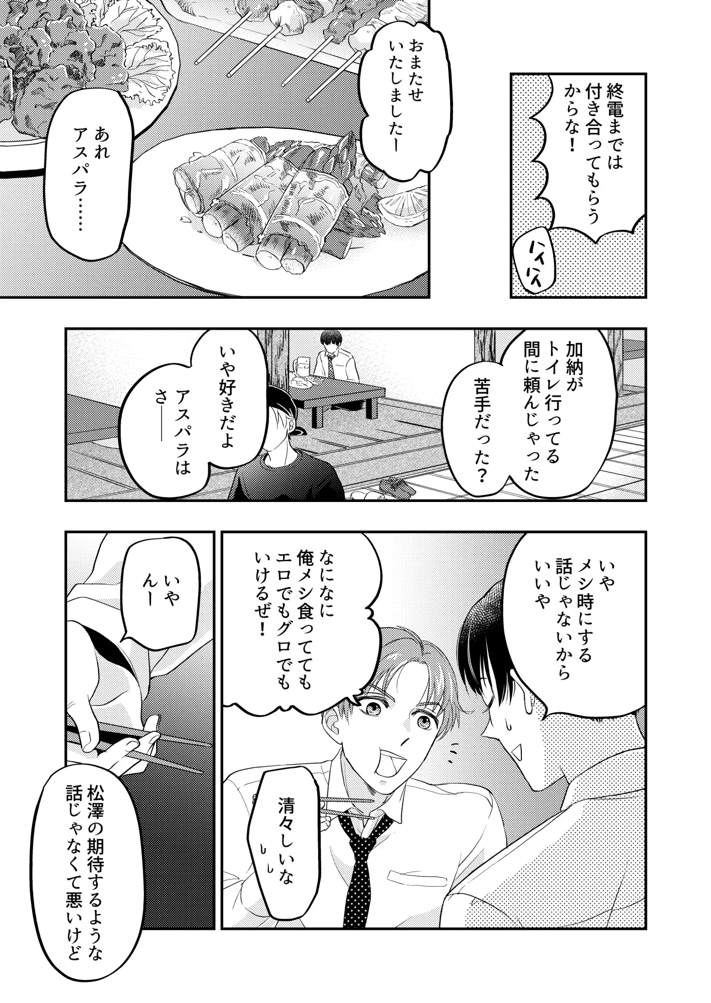 加納がアスパラガスを食べたあとの尿の話題をすると、話の流れで松澤も秘めたる願望を話し出す――。【全40p:漫画本文(1)8p/(2)12p/(3)12p】