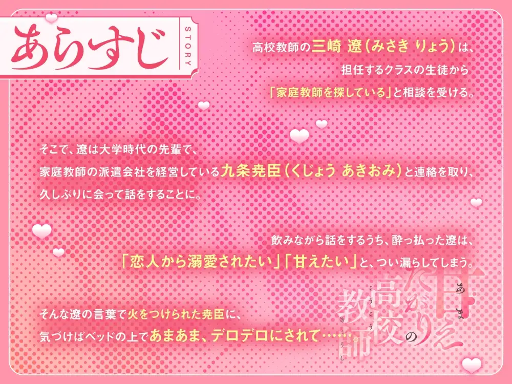 高校教師の三崎遼(みさきりょう)は、担任するクラスの生徒から「家庭教師を探している」と相談を受ける。