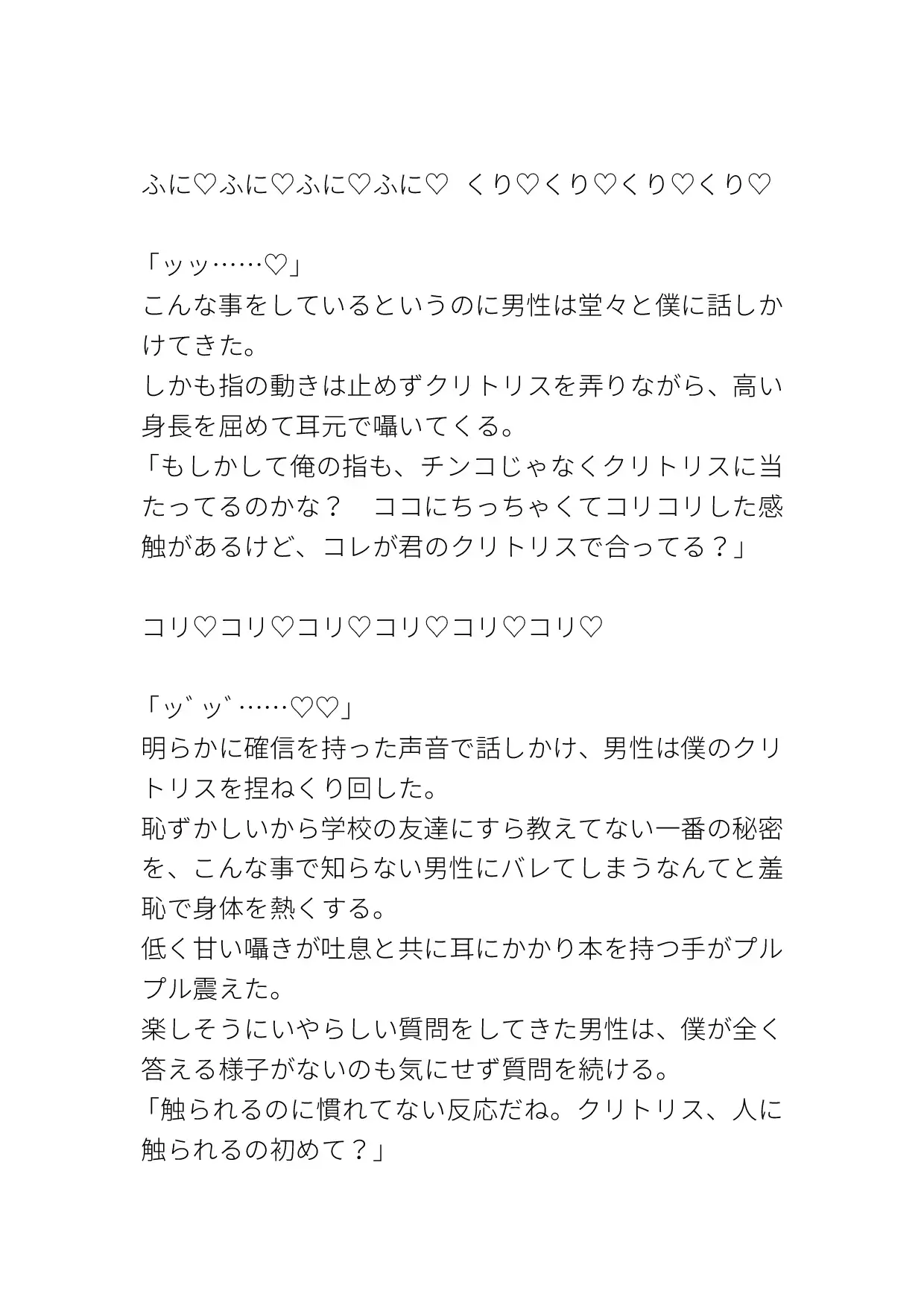 カントボーイ/痴○/クリ責め/言葉責め/中出し/ハート喘ぎ/濁点喘ぎ/擬音表現