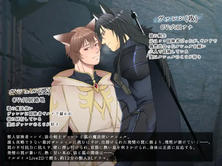 発情の罠が暴いた、熱く甘い本心。狼と狐の関係は――。フルボイスLive2Dで贈る、約12分の獣人BLドラマ!