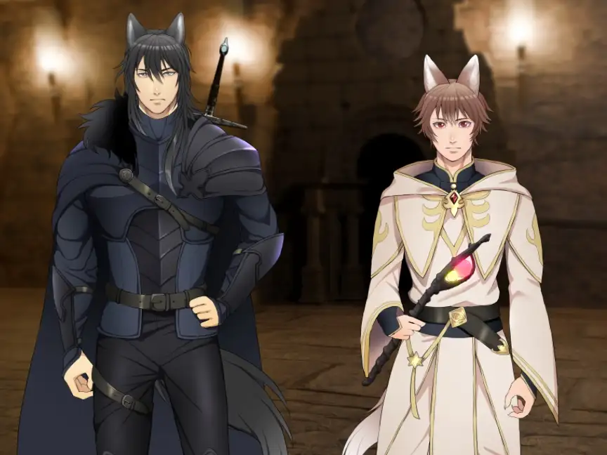 獣人冒険者コンビ、狼の剣士ヴァレンと狐の魔法使いルシェル。