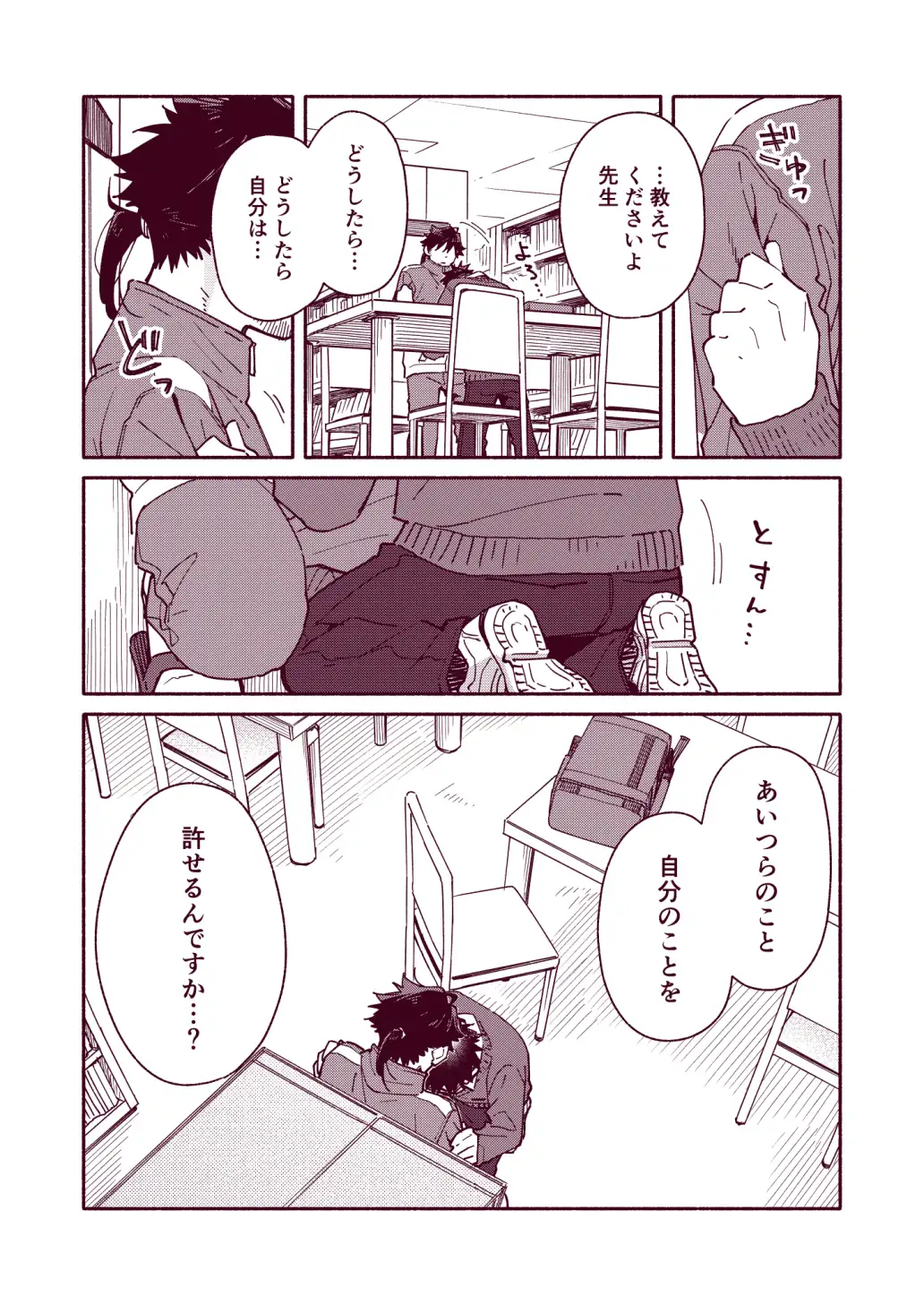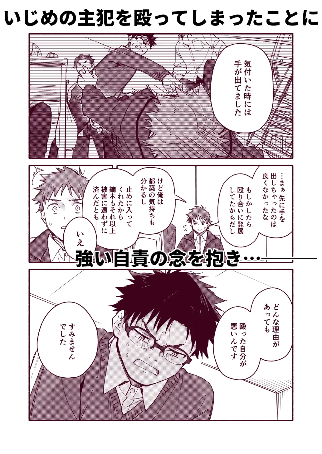 クラスメイトがいじめ被害に遭う中、それを看過できず主犯を殴ってしまった都築。加害者となってしまったことへの自責の念から逃れる術を持たない都築に、木塚が『加害授業』を行うその最中――…【作品情報】