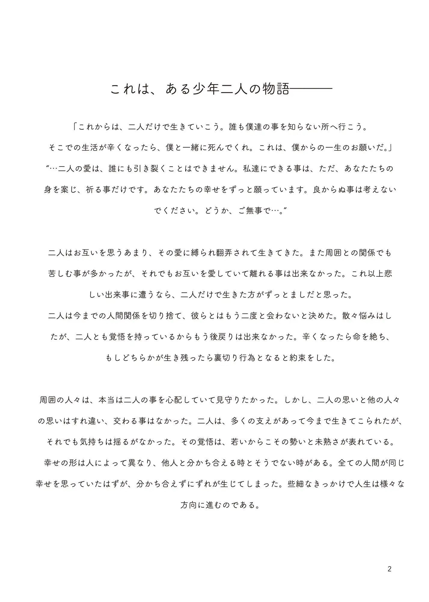 制作過程と共に、少年同士の関係から繰り広げられる世界を楽しんでいただけたら幸いです。