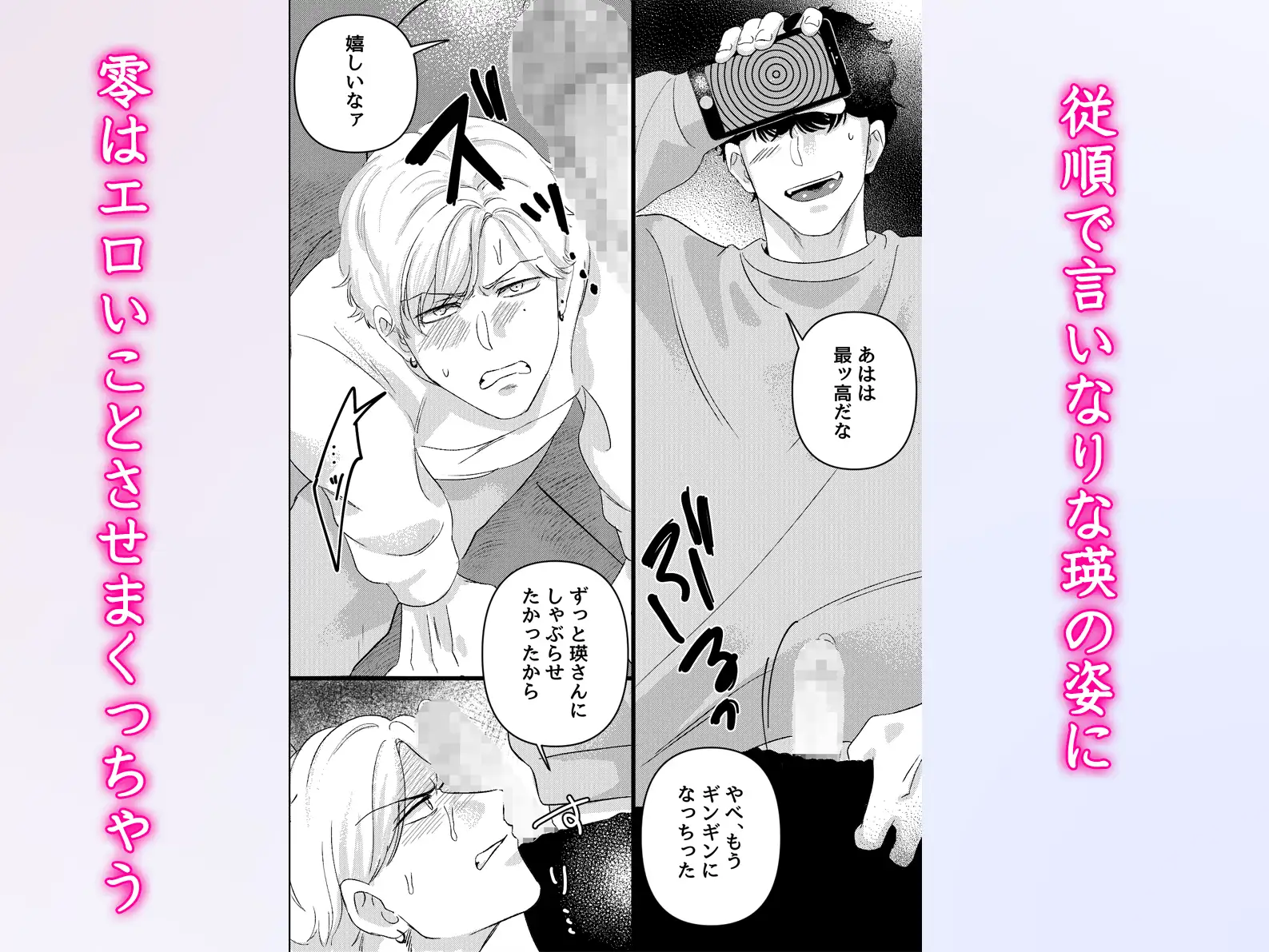 零は微笑むと瑛に「二人にめちゃくちゃに抱かれたい」と言わせる。