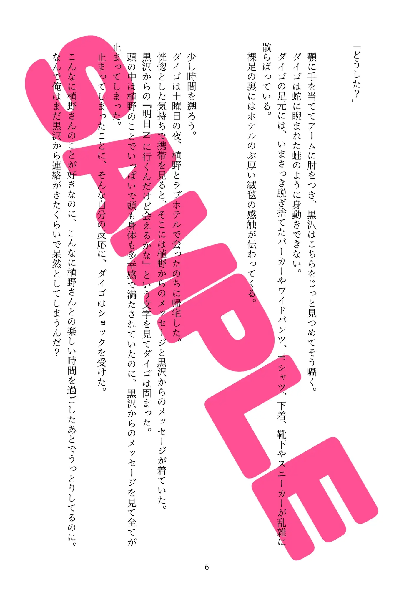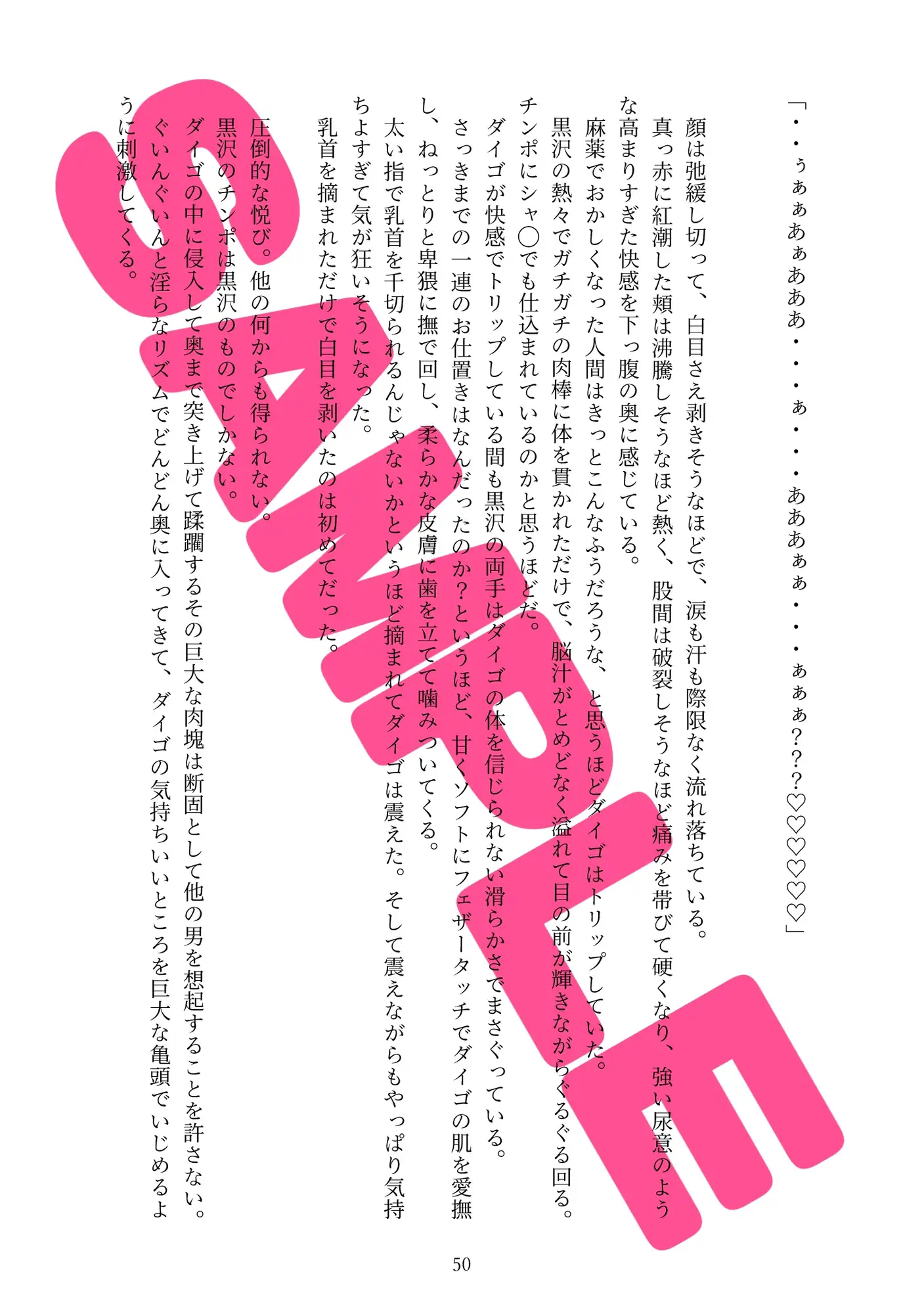 部屋で全裸でになるように命じられて棒立ちするダイゴを黒沢はひたすら見つめ続けて・・・?ヤンチャリーマン・ダイゴがドスケベリーマンの黒沢との出会いをきっかけにバリタチからウケに目覚め、色んな男たちと出会ったりエロいことしまくる濃厚いちゃラブゲイエロ小説です。