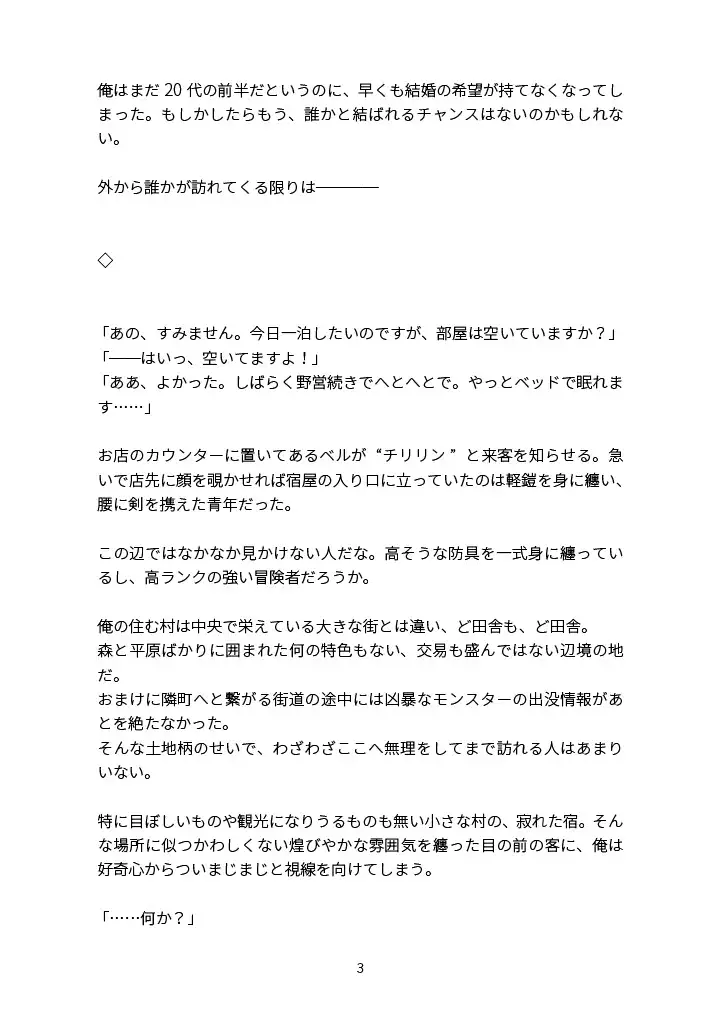 小さな村で宿屋を営んでいる主人公(リト)と、客としてやって来たとある冒険者(アルベール)のお話