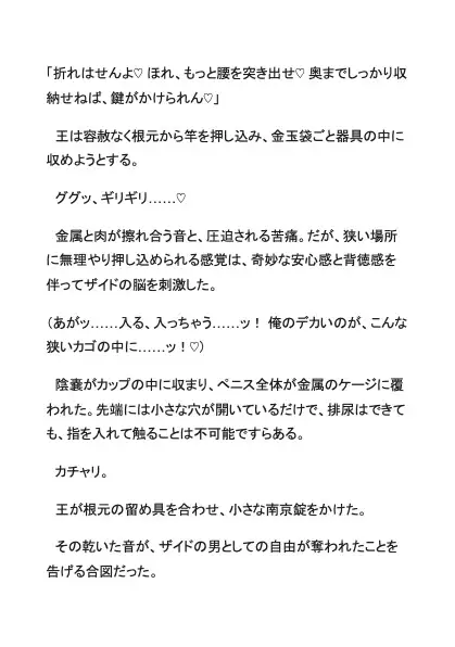 翌日からは貞操帯でペニスを封印され、乳首クリップとアナルバイブを装着したまま公務中の放置プレイへ。王の指先一つで操られる魔道具の刺激に、直立不動のまま白目を剥いて悶絶する日々。 射精を許されない寸止め地獄、ザーメン臭いマントでの警護、そして毎晩注ぎ込まれる濃厚な王の種――。