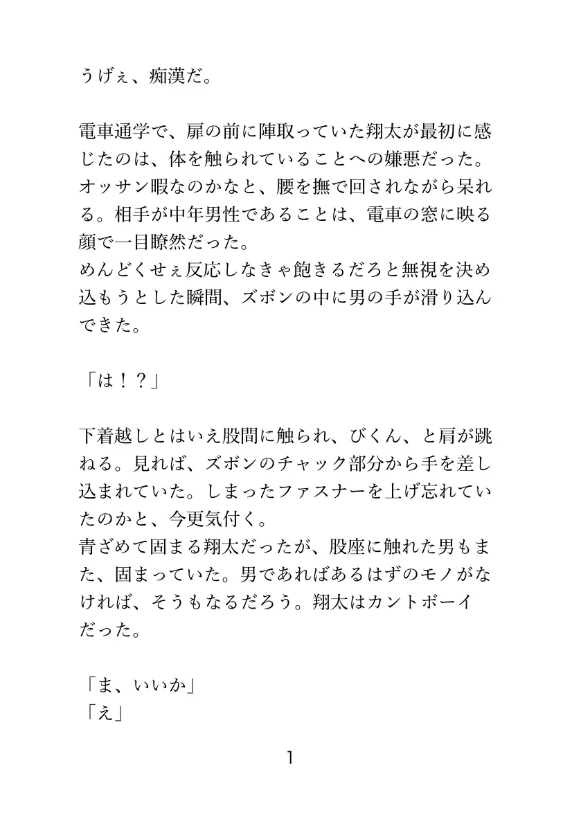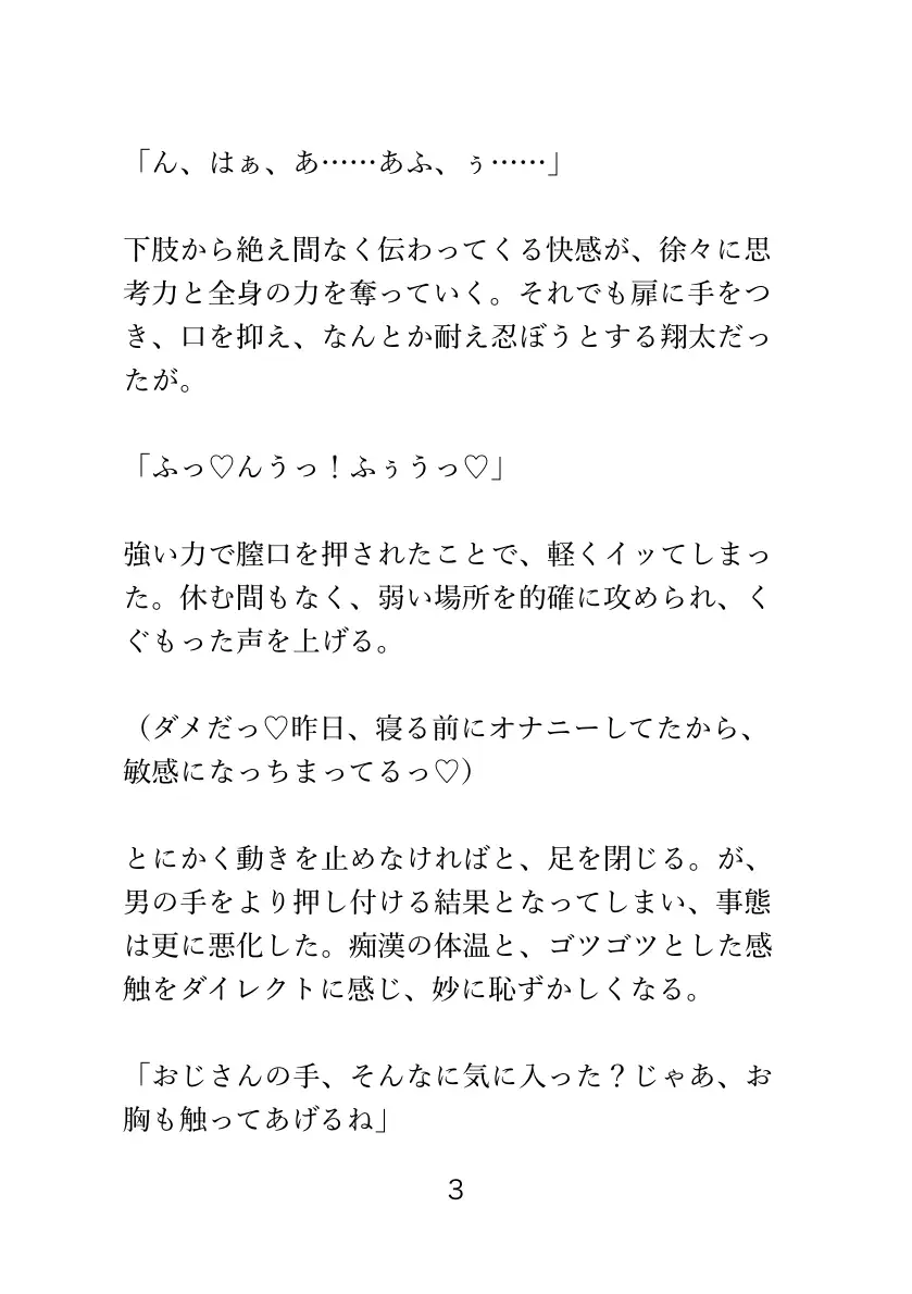 電車通学中のDKカントボーイが痴○おじさんに乳首と女性器を弄られ、連れ込まれたトイレの個室で中出しされて堕ちるお話です。