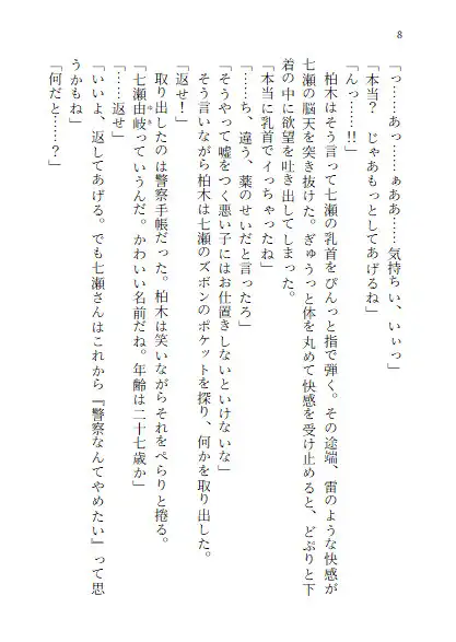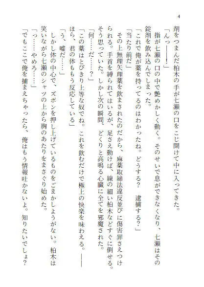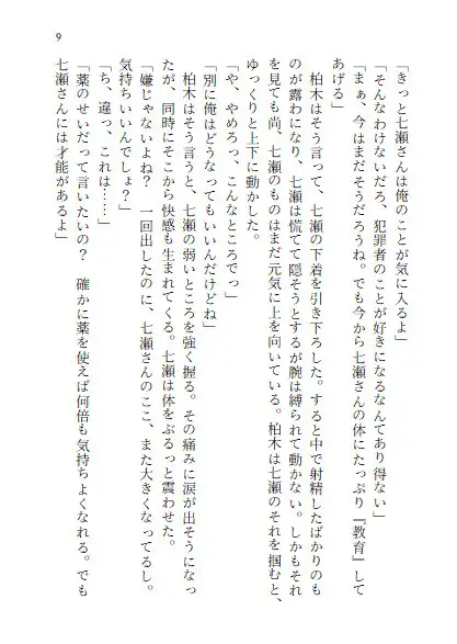 こっそり柏木のことを観察していた七瀬は柏木に気付かれてしまい、電車の中で絶頂させられてしまう。