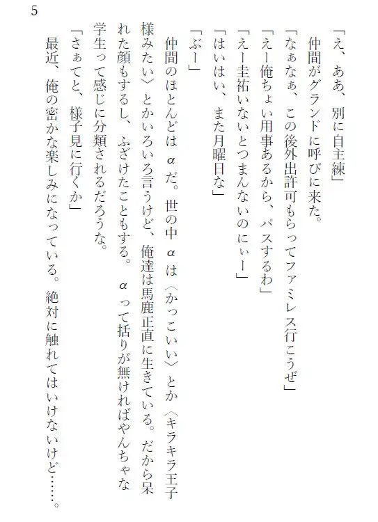 学園BL/禁断の恋/α×Ω/α×α/読心術/修学旅行/秘密の恋/甘く切ない/絶対に触れてはいけないルール/ペナルティー/断面図/玩具プレイ/異物挿入/思春期の男子/青春/両片想い……etc
