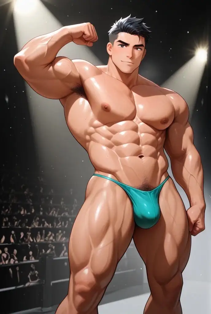 だから競技をする人間はとにかく満貫、跳満、役満だけは振り込まないように細心の注意を払って麻雀を打っていた。麻雀の下は深く掘られていて、ちょうどビルダーが立つと、顔が麻雀をしている人の股間の前に来るように設計されていた。しかし雀卓の宅の大きさ決まっているので、中にいる四人のビルダーたちの背中やケツは自然と密着してしまい、皆汗をかくのでぬるぬる状態であったが、それでも一刻も休まずにフェラチオし続けていた。