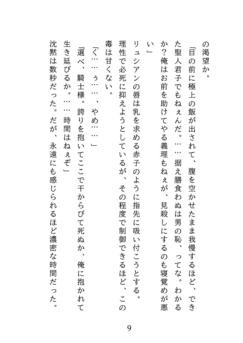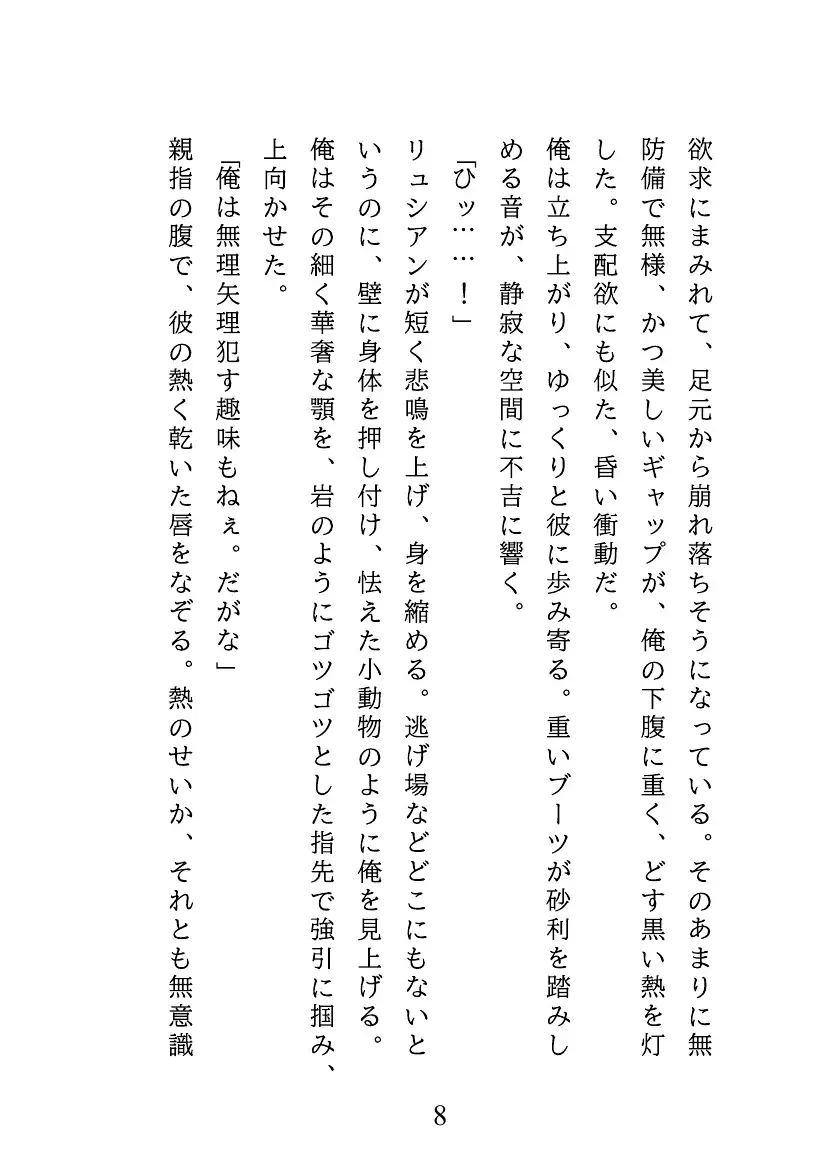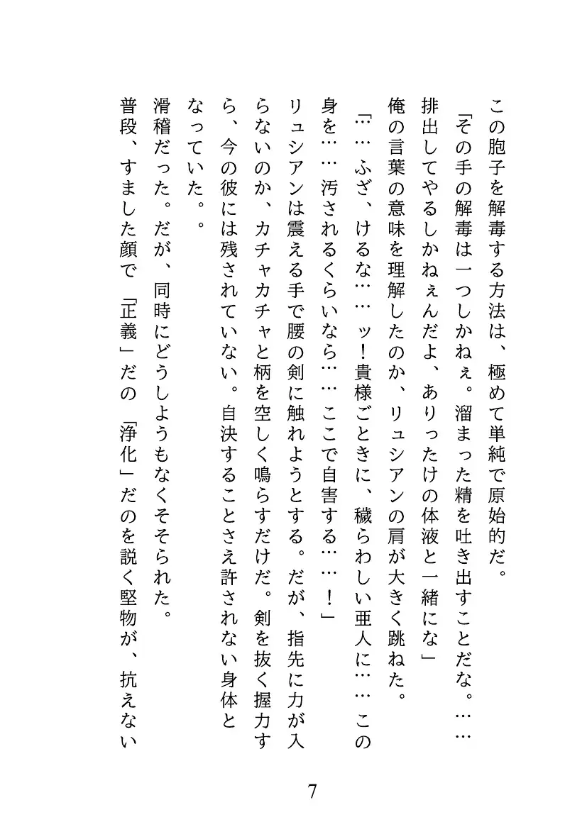 屈辱に震えるリュシアンはグロムから原始的な解毒方法を提案される。 抗えない快楽に、リュシアンの理性は崩れ去り、身も心も暴かれていく。【体験版を17ページご用意しています】