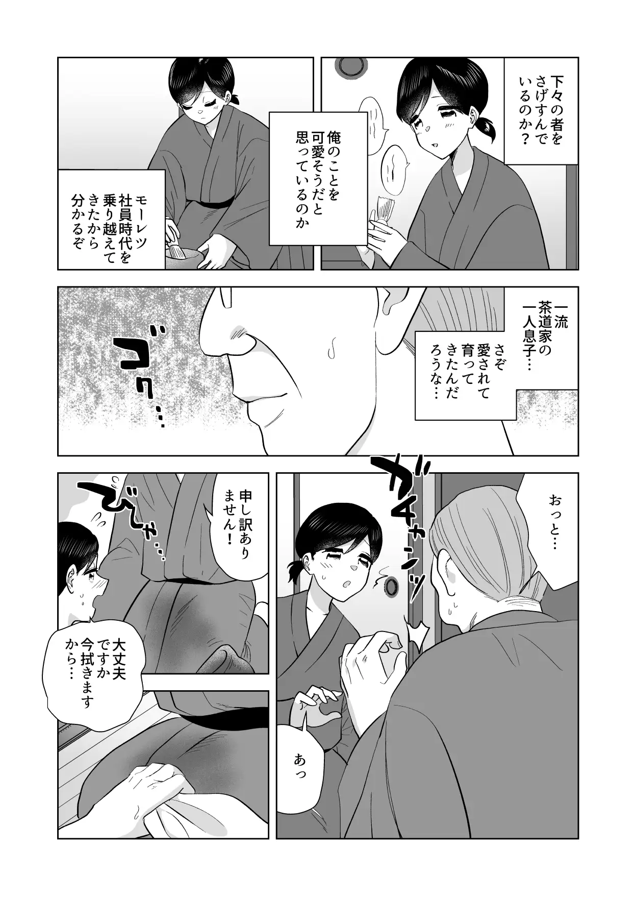 そんな関係から始まるおじ×着物男子の漫画です!プレイ内容としては、手コキ(させる方)・フェラ(させる方)・乳首攻め・アナル弄り・挿入・中出しを含みます。